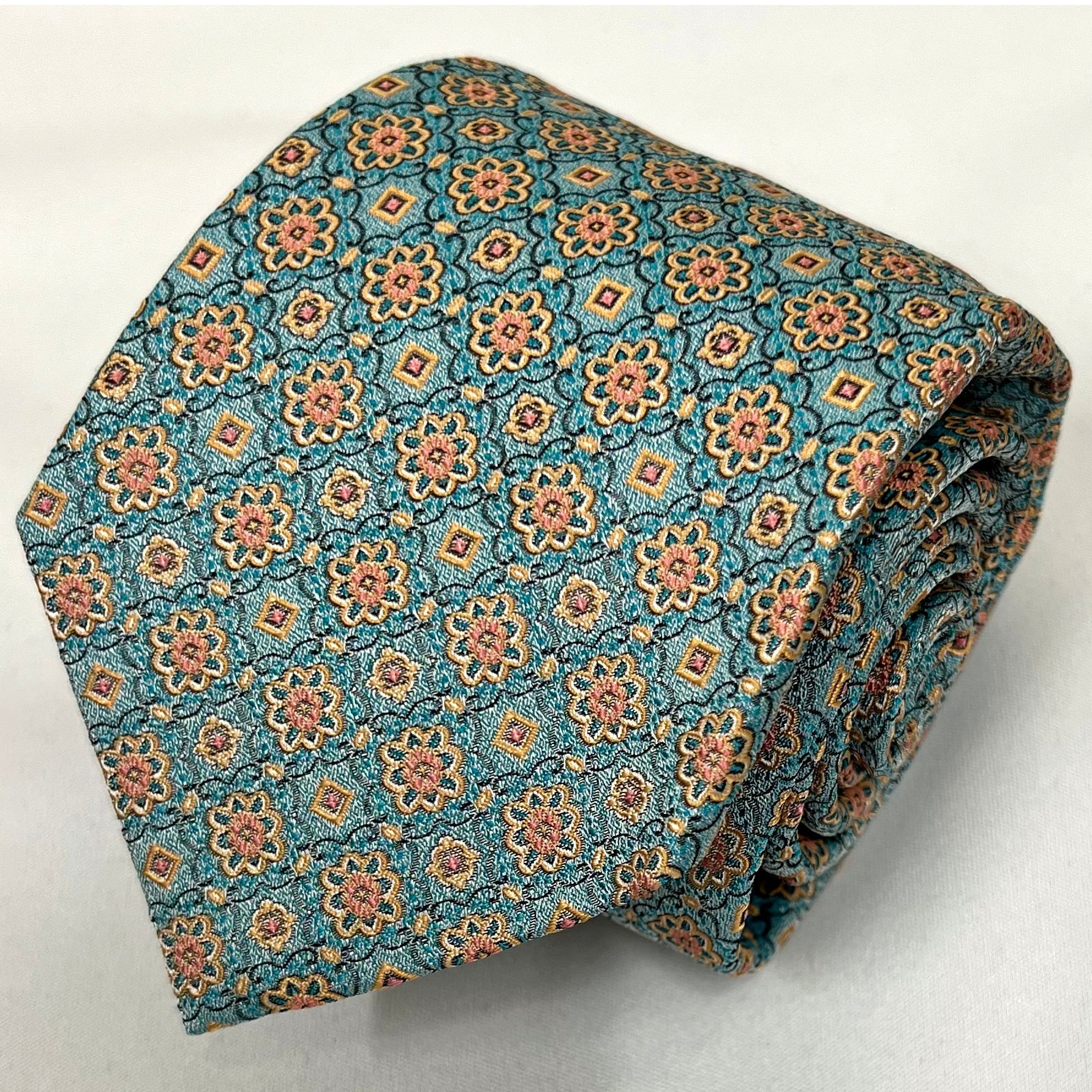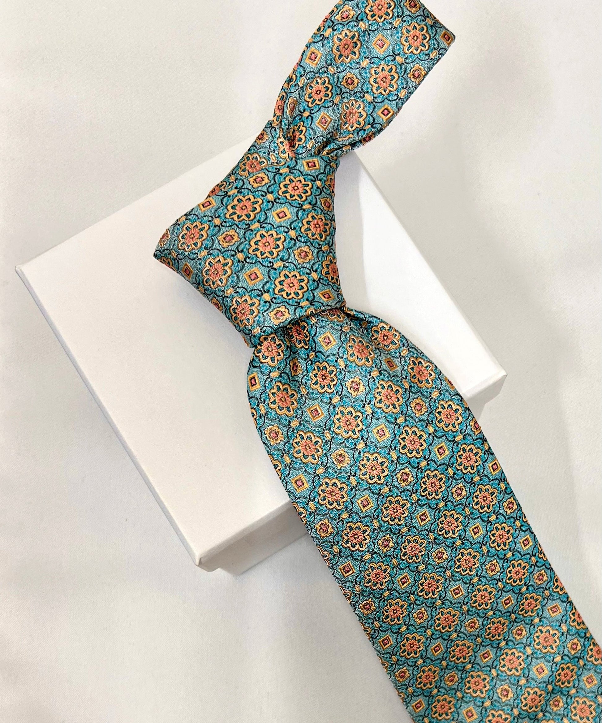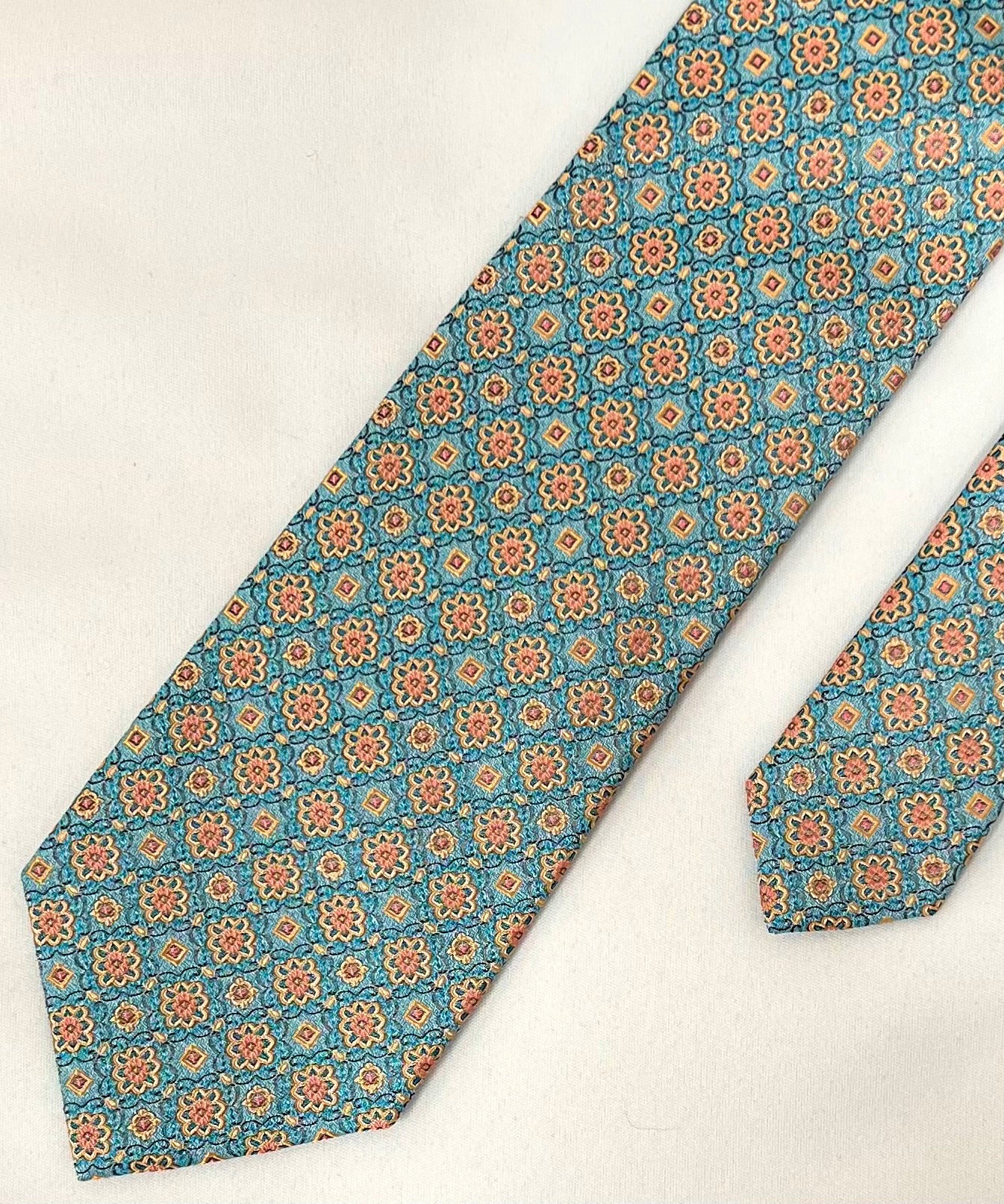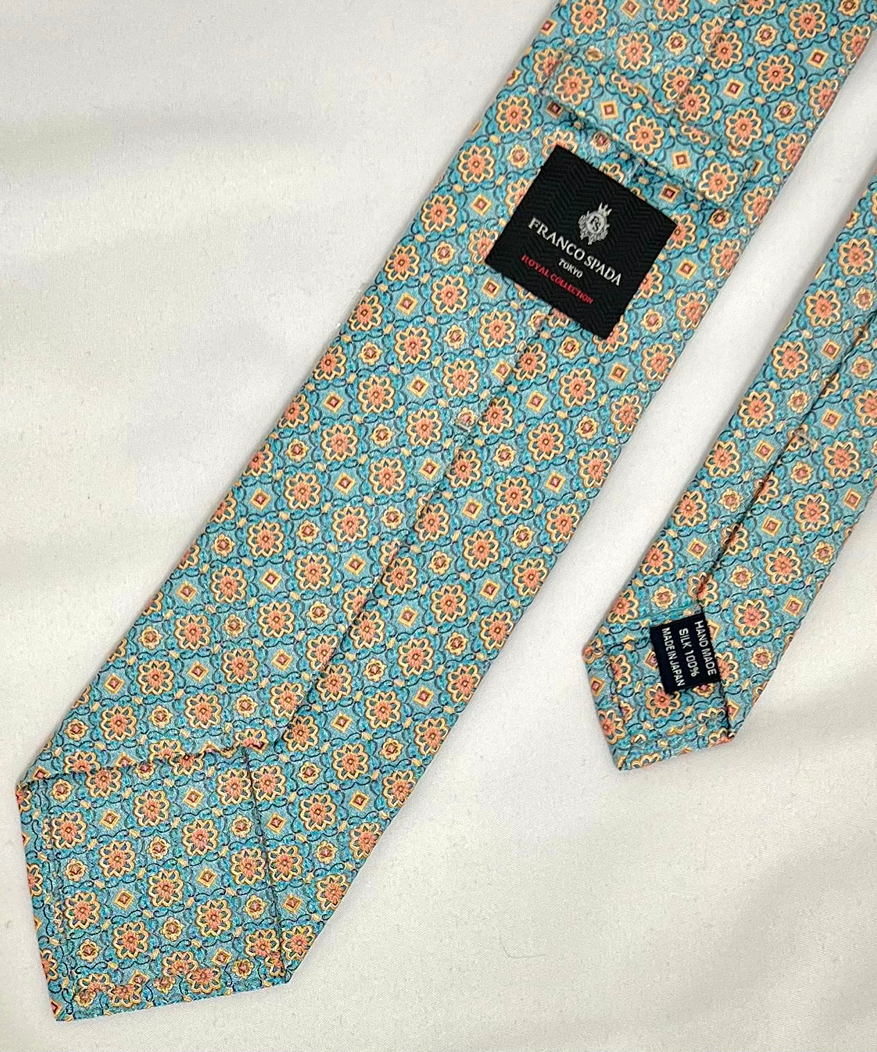 Franco Spada ( フランコスパダ ) フレンチヴィンテージメダリオンジャガードネクタイ2: グリーン×オレンジ
