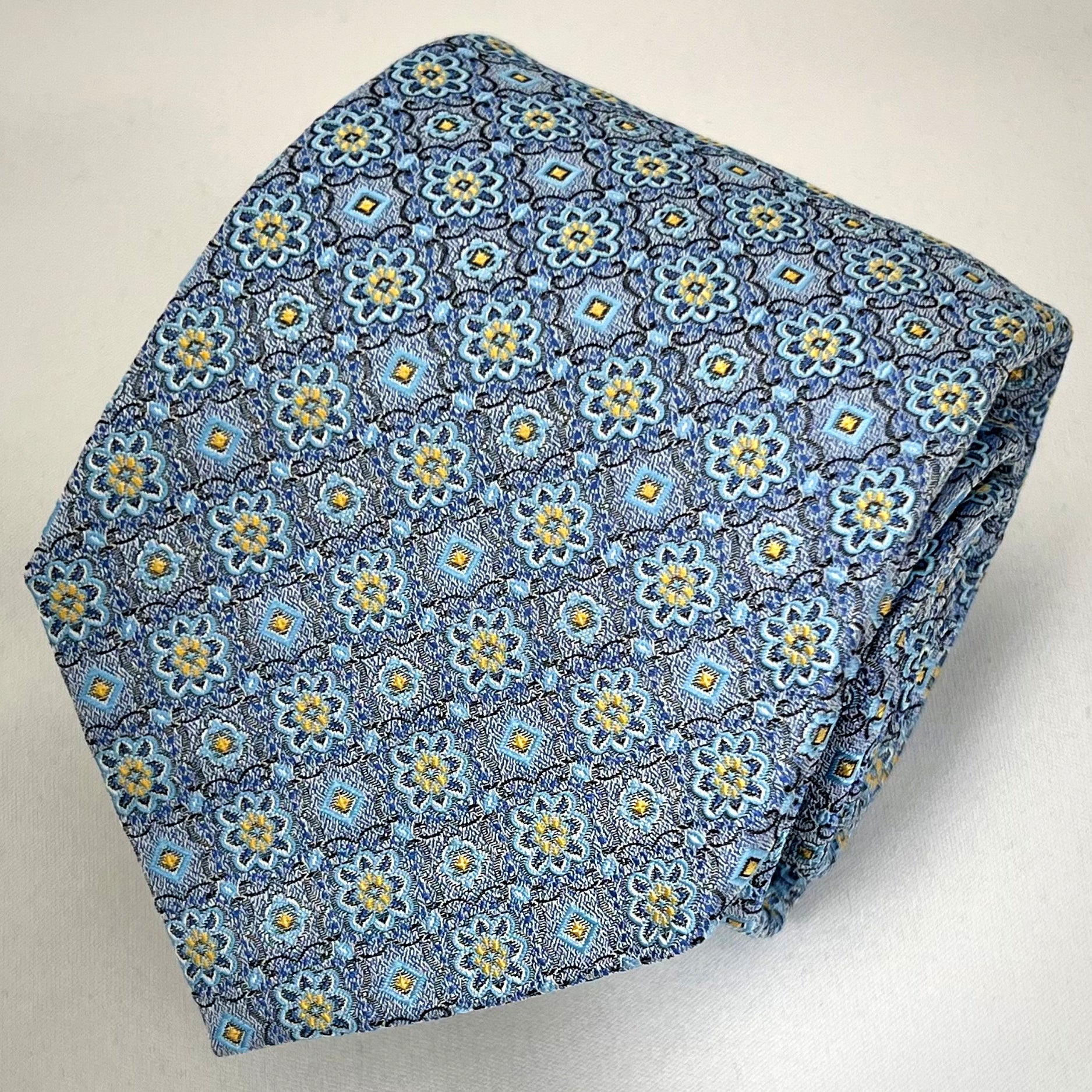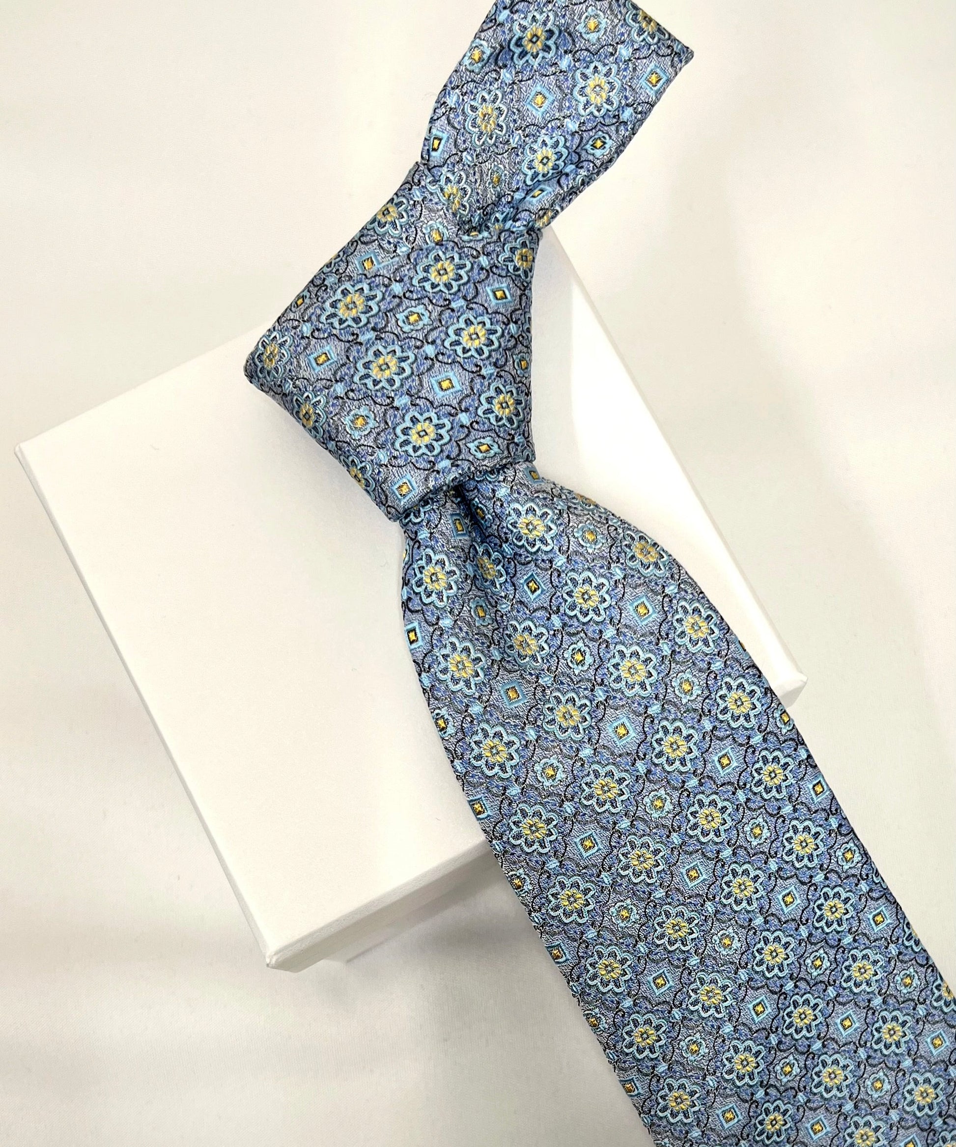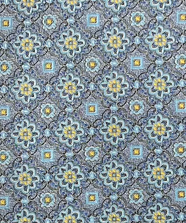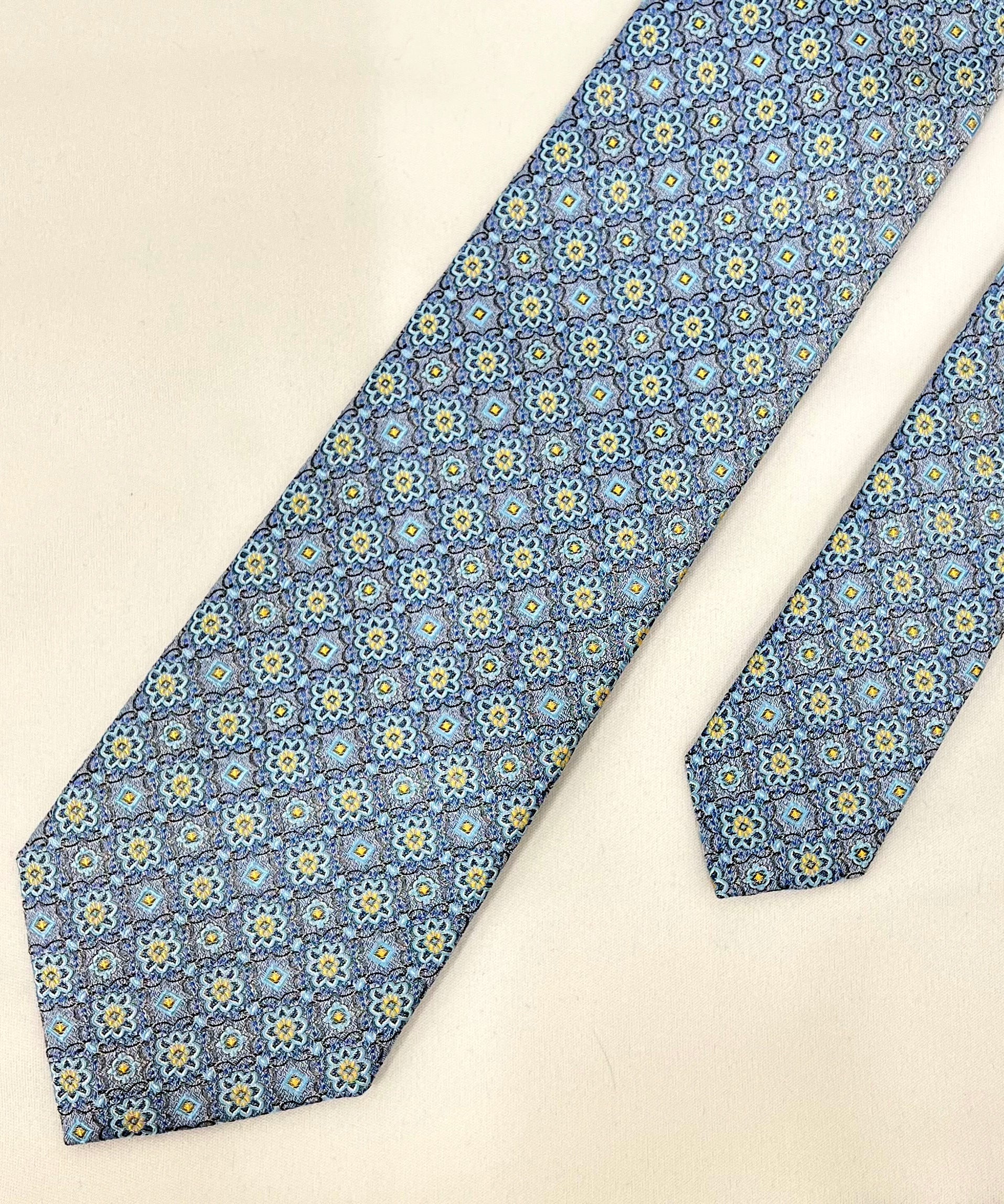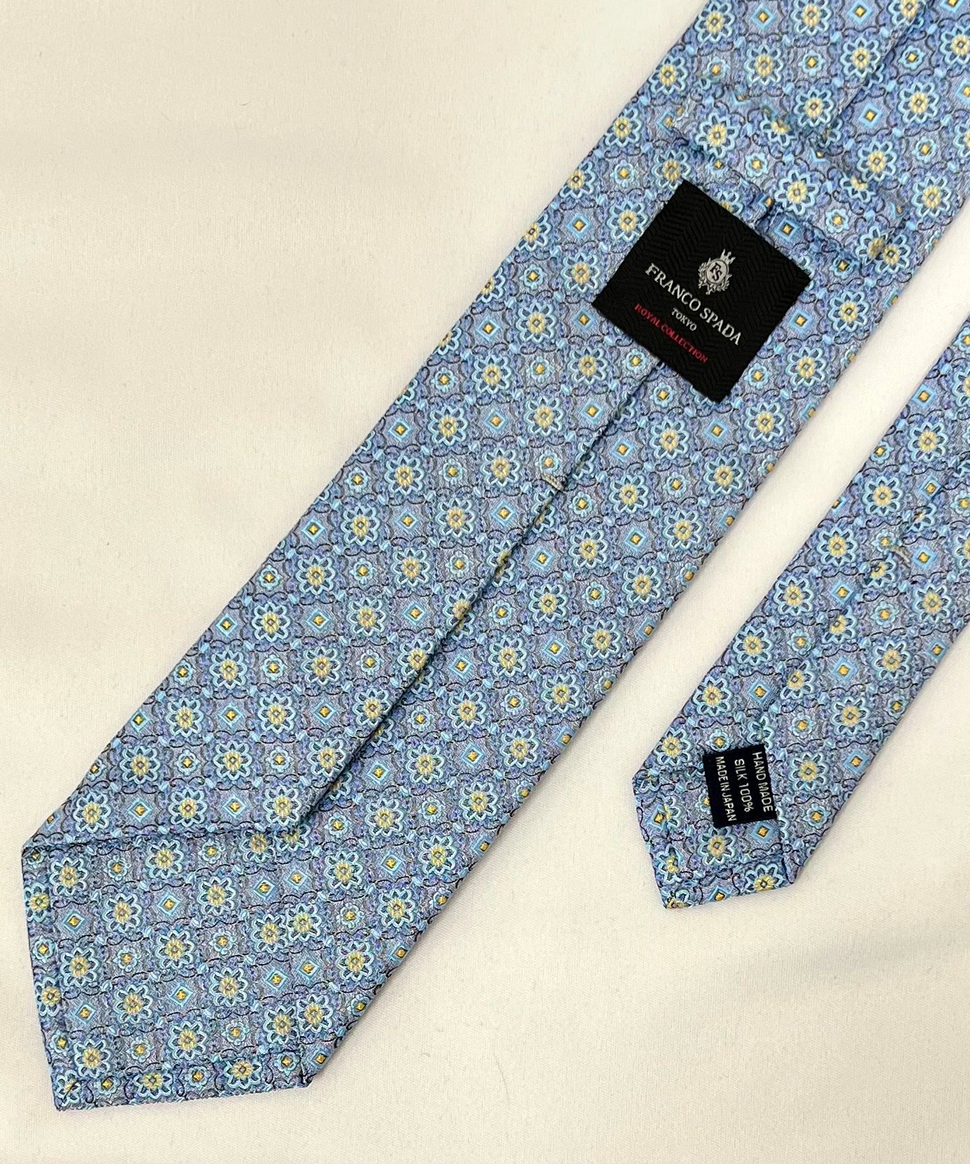 Franco Spada ( フランコスパダ ) フレンチヴィンテージメダリオンジャガードネクタイ2: サックスブルー×イエロー