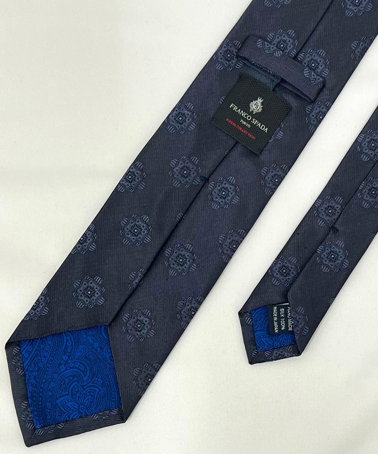 フランコスパダオリジナルで作成したデザインで、ヴィンテージメダリオンを無地調で表現したシックでエレガントなハイクオリティのネクタイです。