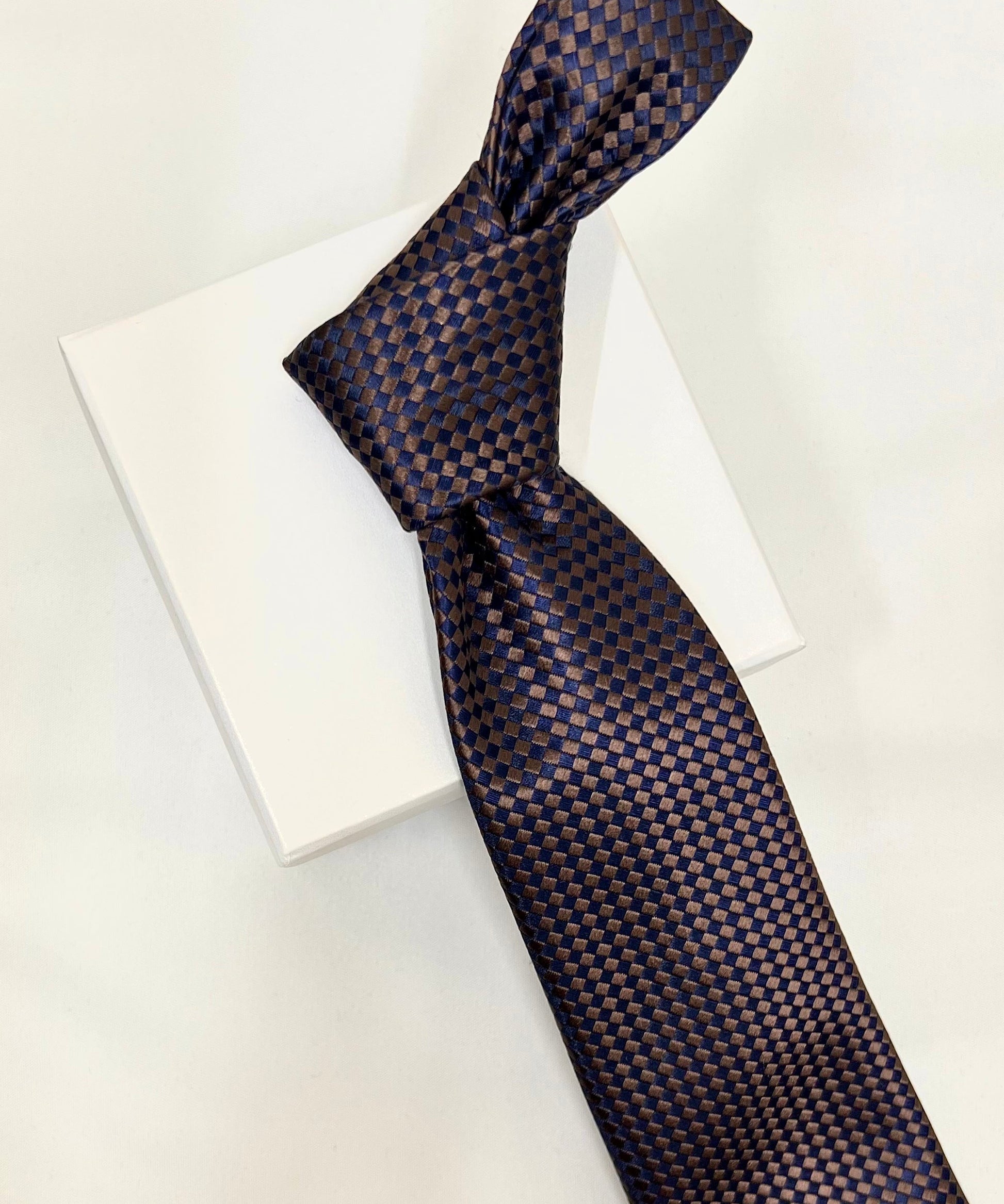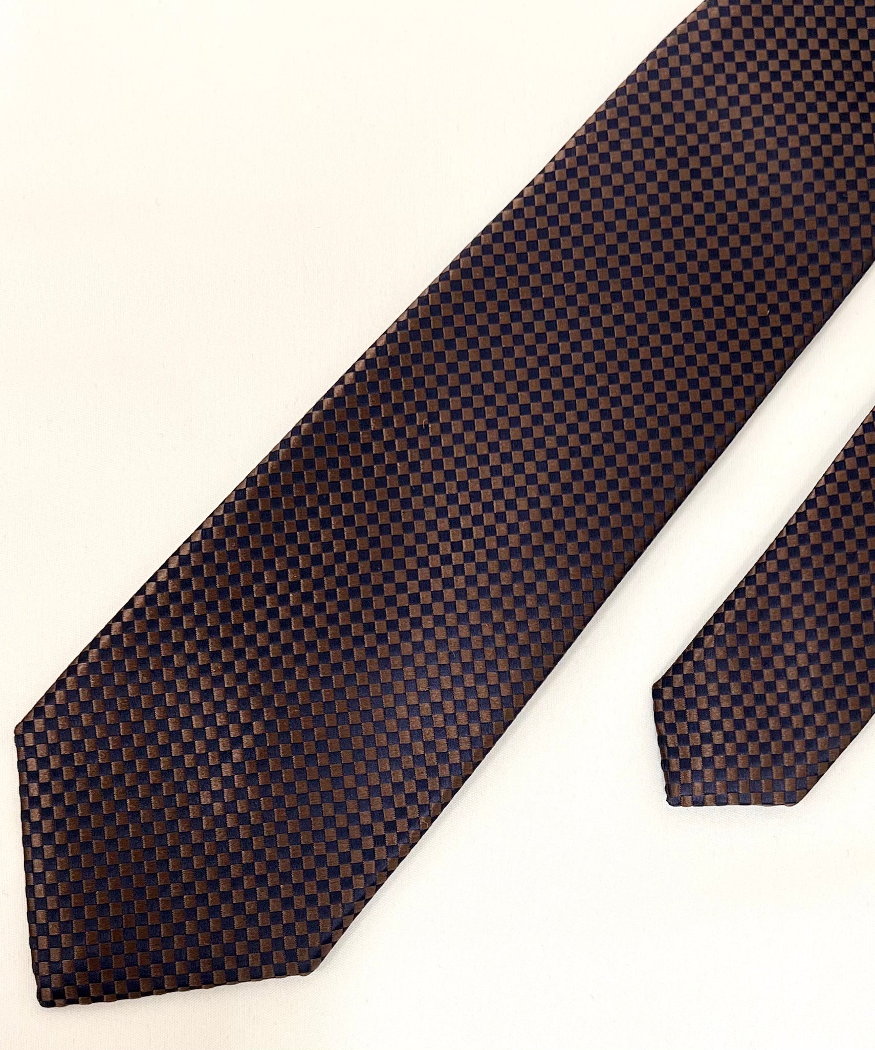 AZZURRO(アズーロ) 新大バスケット無地調ジャガードネクタイ:ミッドナイトネイビー×ブラウン