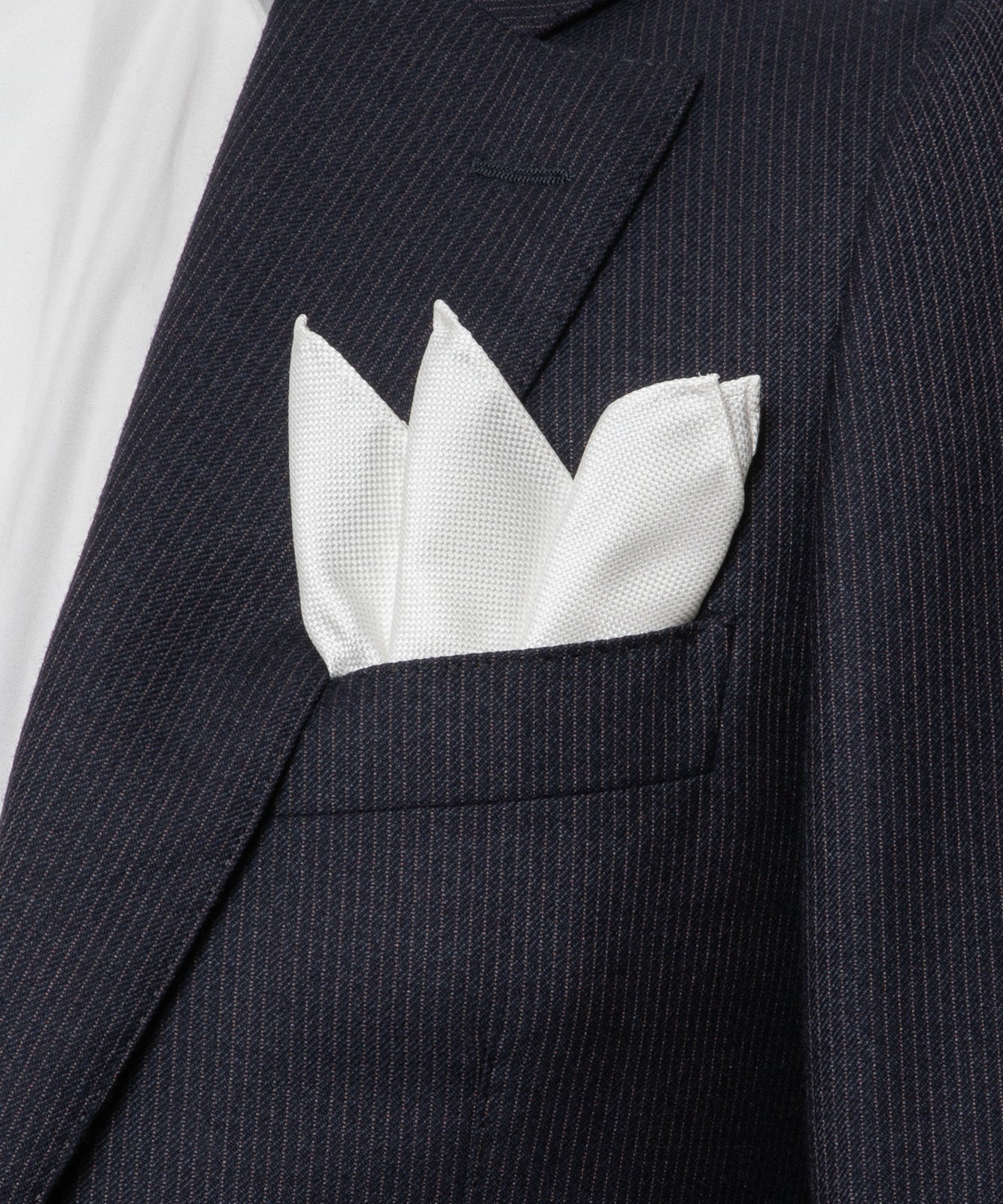 ビジネスシーンは基よりフォーマルシーンでも使用出来るお洒落なポケットチーフとしてワンランクアップのお洒落感を演出します。