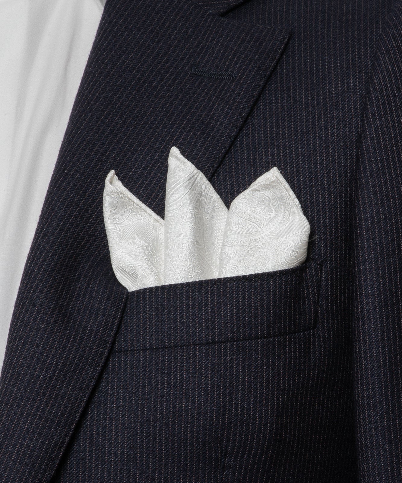 ビジネスシーンは基よりフォーマルシーンでも使用出来るお洒落なポケットチーフとしてワンランクアップのお洒落感を演出します。