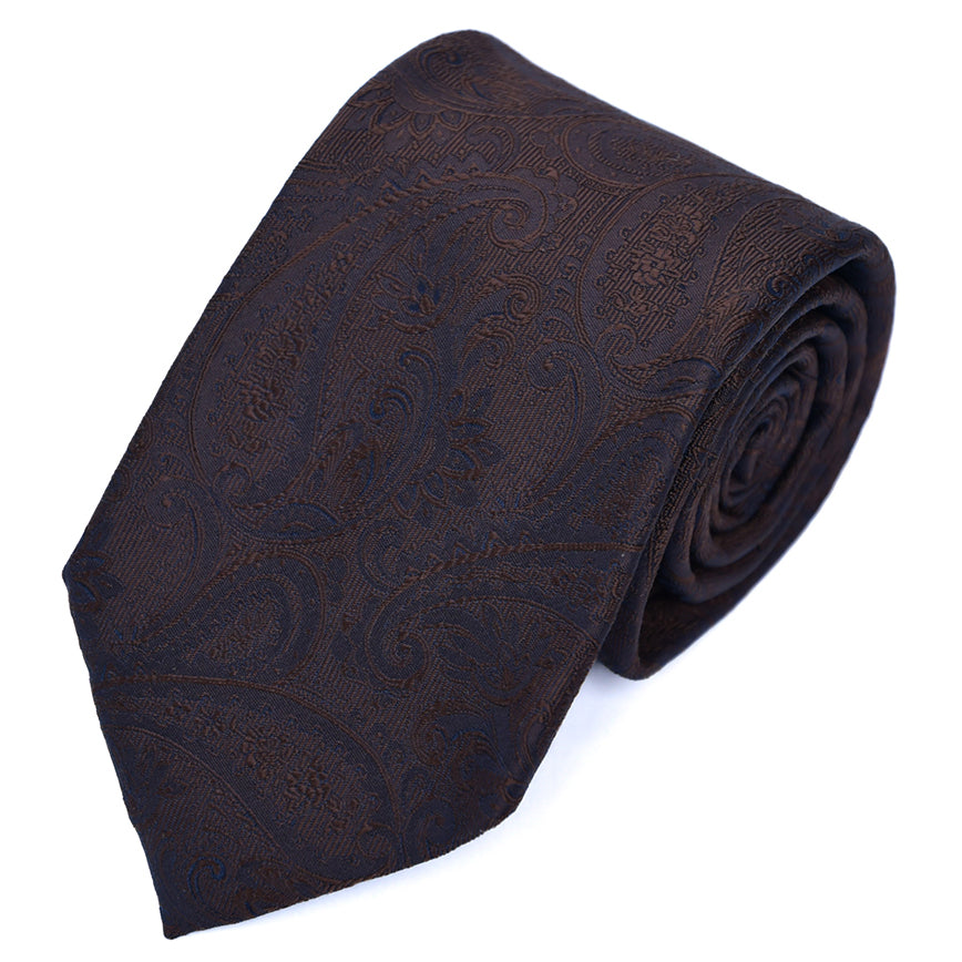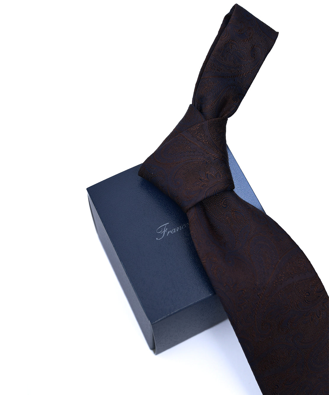 Franco spada (フランコスパダ) クラシック更紗ペーズリー無地調ネクタイ:ブラウン