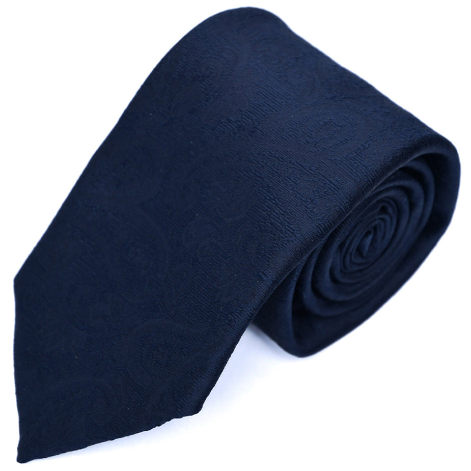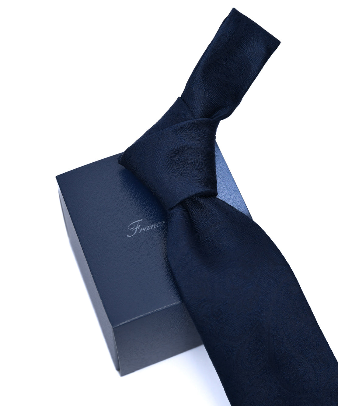 Franco Spada (フランコスパダ) クラシック更紗ペーズリー無地調ネクタイ:ミッドナイトネイビー