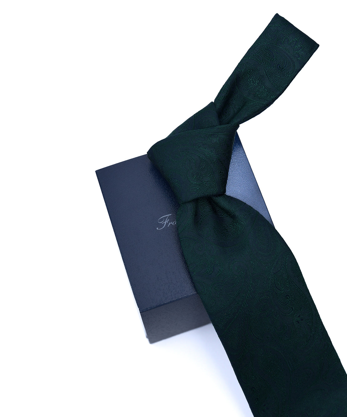 Franco spada ( フランコスパダ ) クラシック更紗ペーズリー無地調ネクタイ:ブリティッシュグリーン