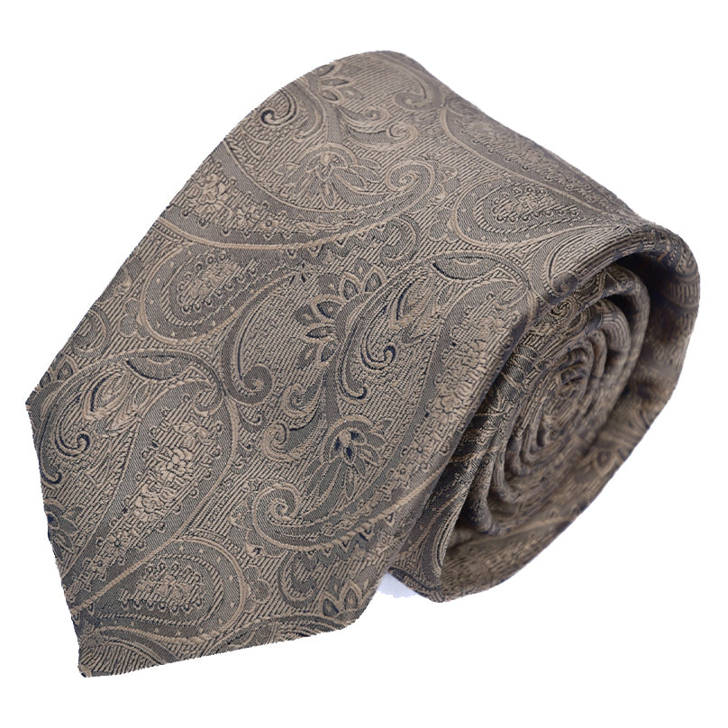 Franco spada (フランコスパダ) クラシック更紗ペーズリー無地調ネクタイ:シャンパンゴールド