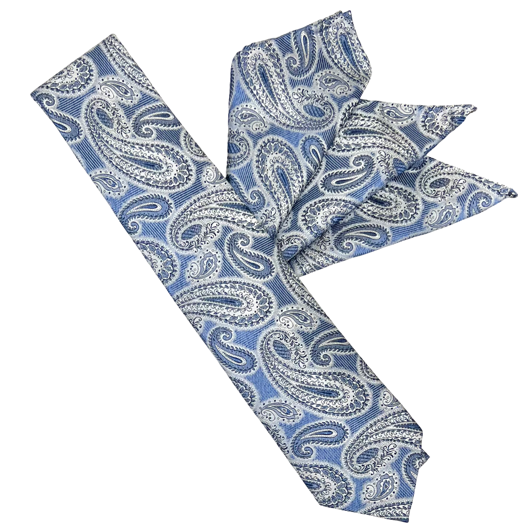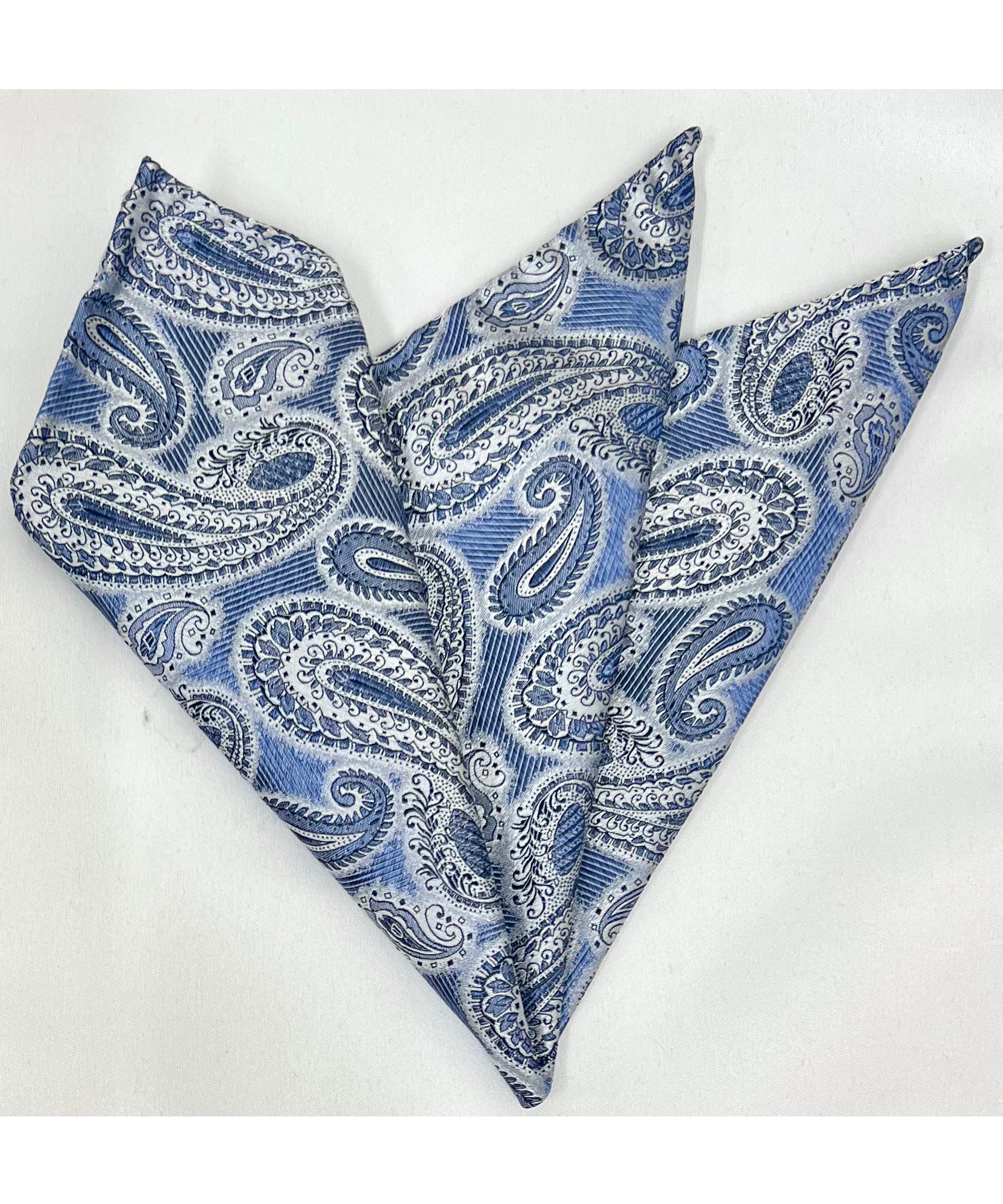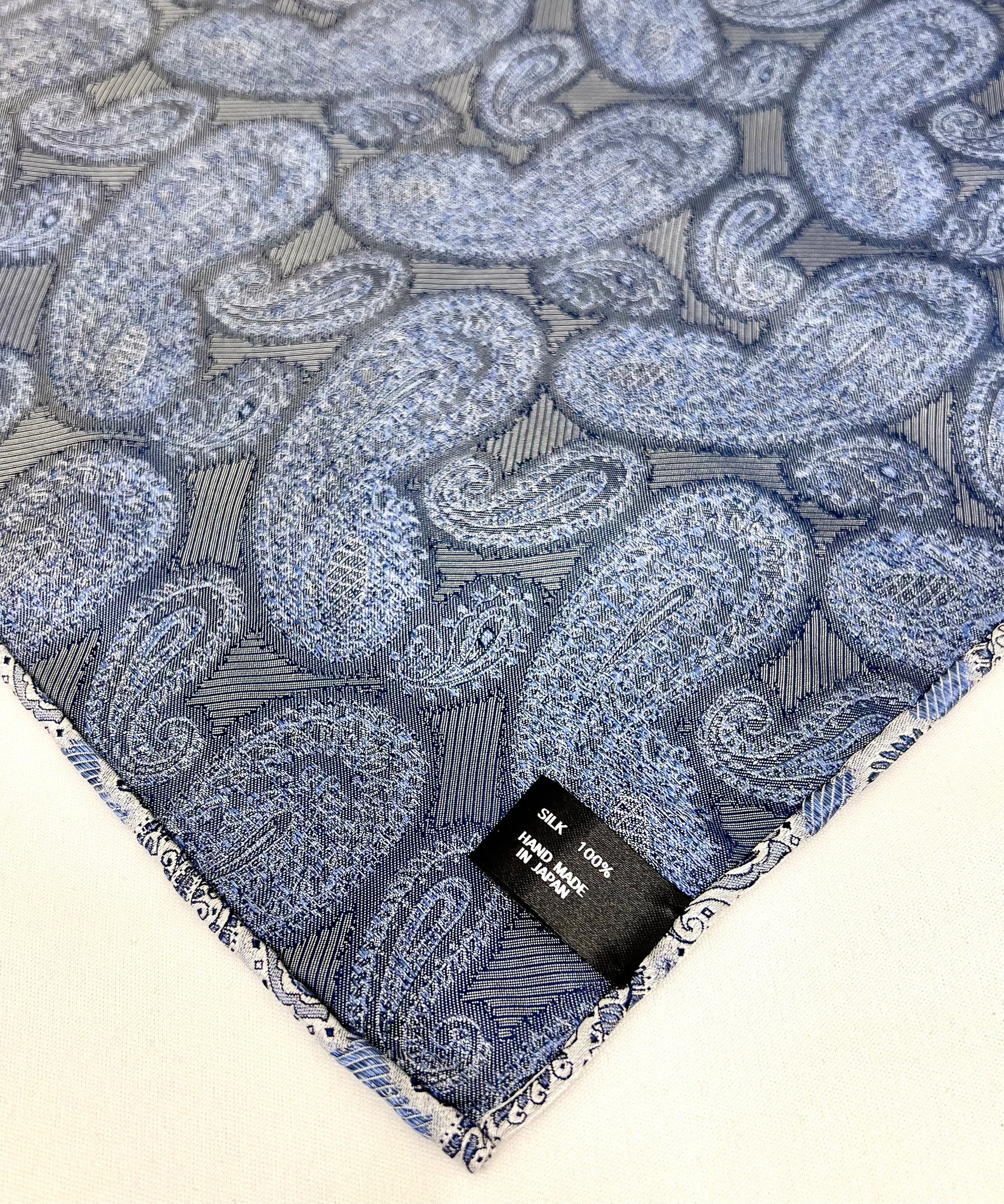 Franco Spada ( フランコスパダ )ハンドロール(手巻き)ポケットチーフ (メランジペーズリートーナルカラー):グレイッシュサックスブルー