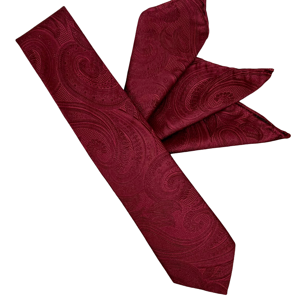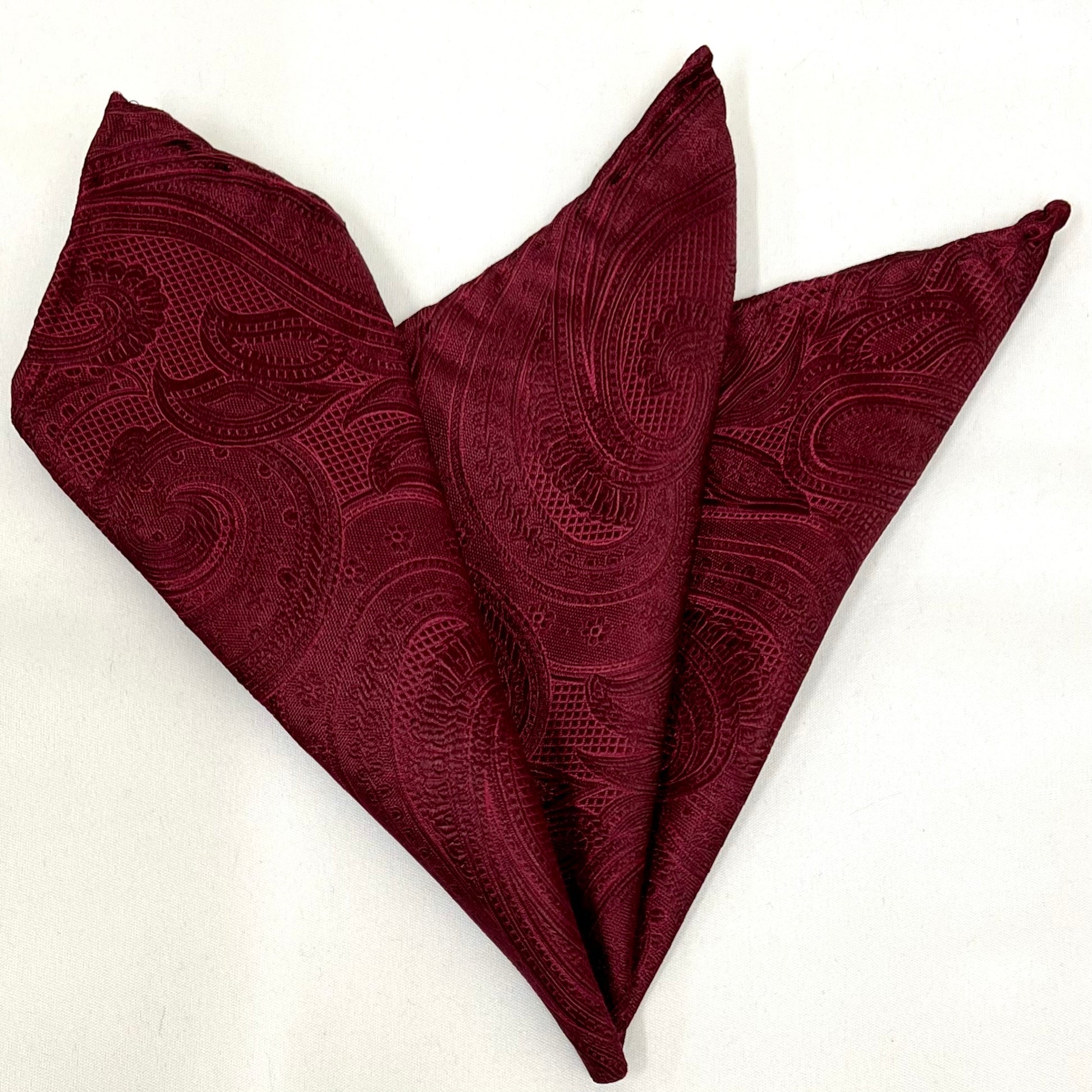 Franco Spada ( フランコスパダ )ハンドロール(手巻き)ポケットチーフ (メランジ無地調大更紗ペーズリー):ボルドー