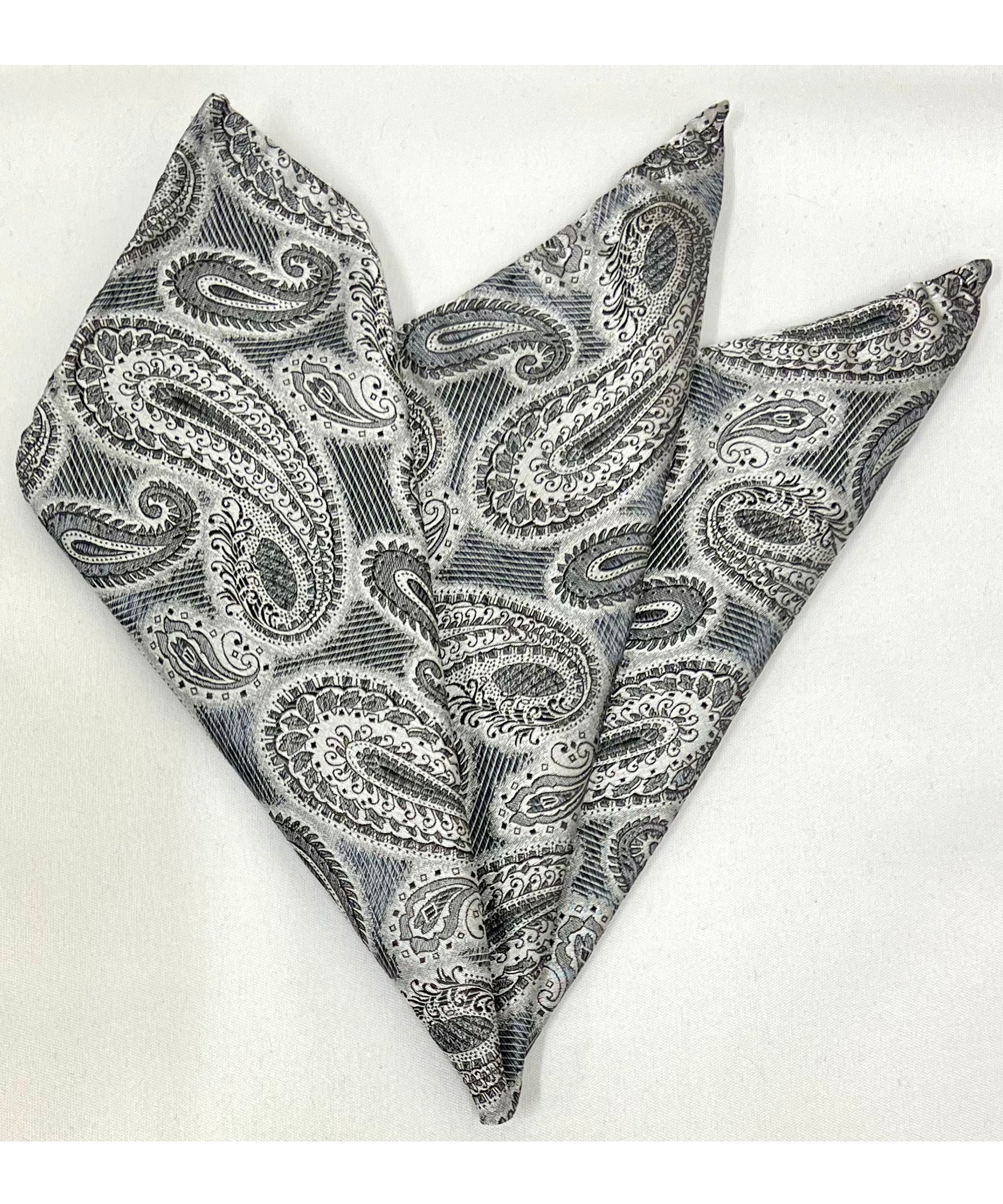 Franco Spada ( フランコスパダ )ハンドロール(手巻き)ポケットチーフ (メランジペーズリートーナルカラー):グレイッシュシルバー