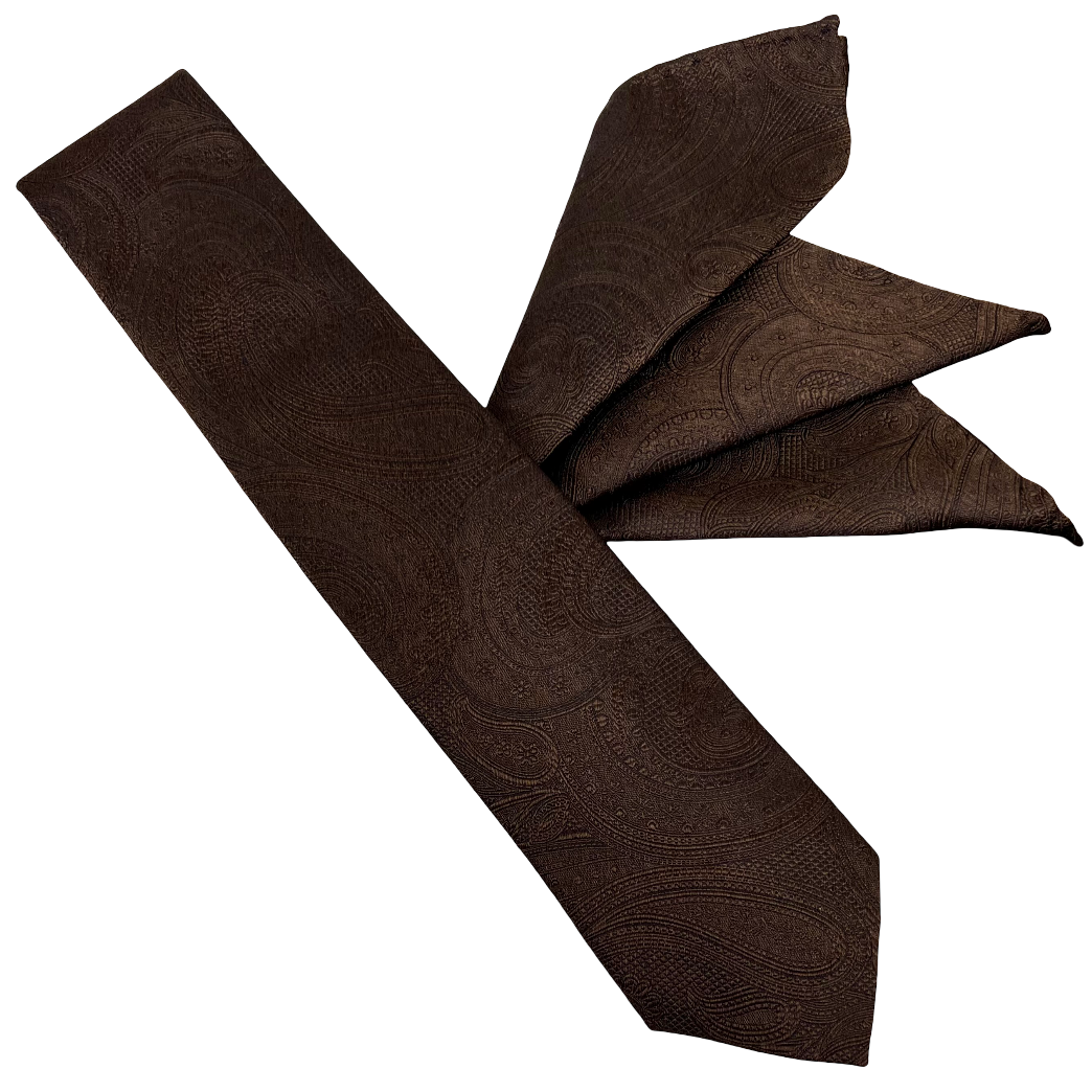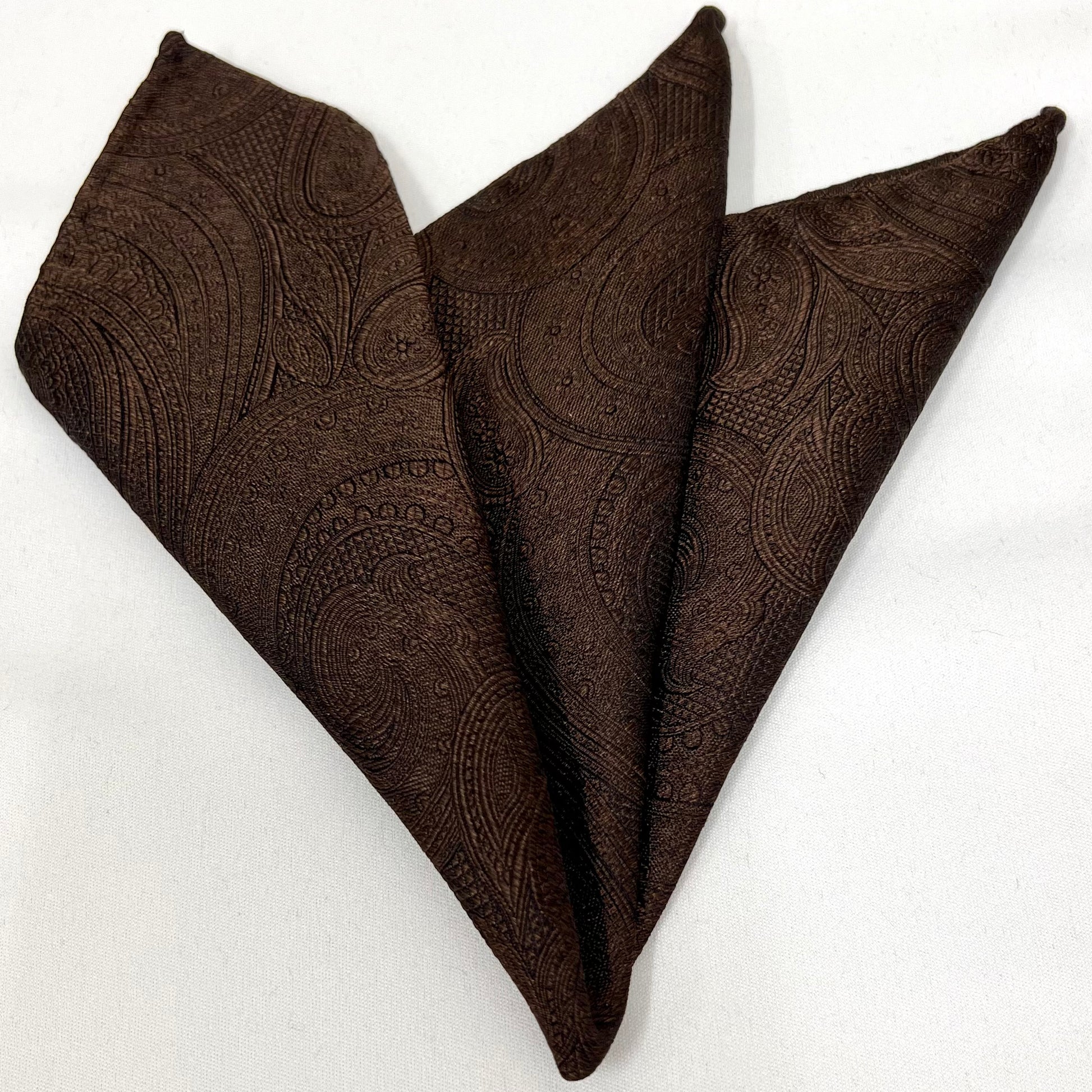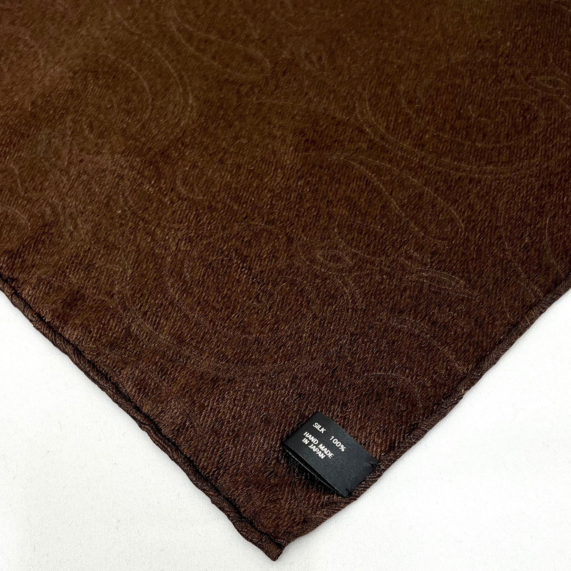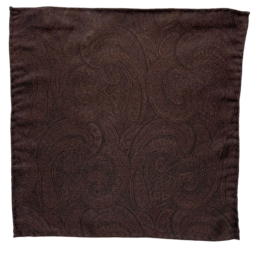 Franco Spada ( フランコスパダ )ハンドロール(手巻き)ポケットチーフ (メランジ無地調大更紗ペーズリー):ブラウン