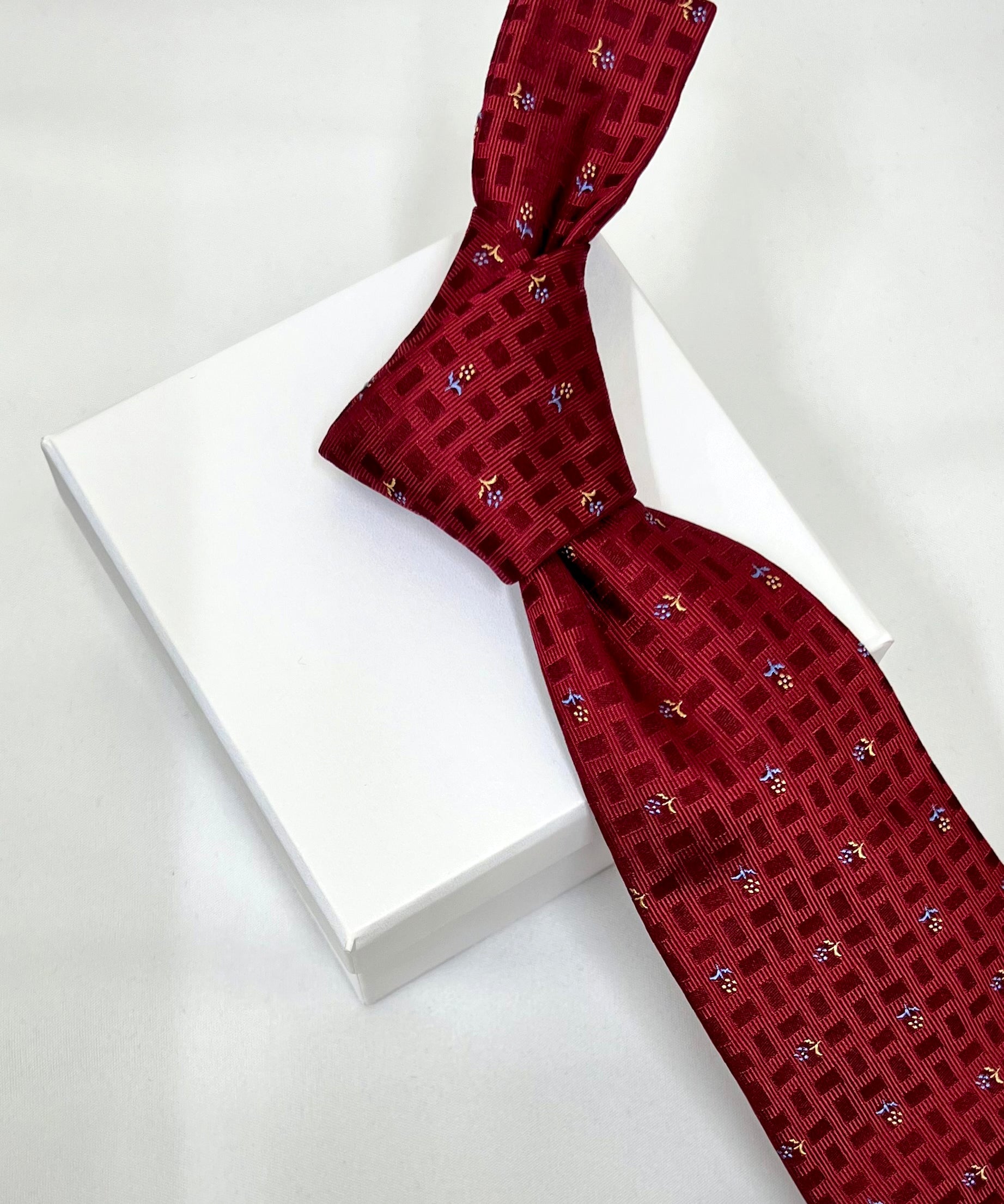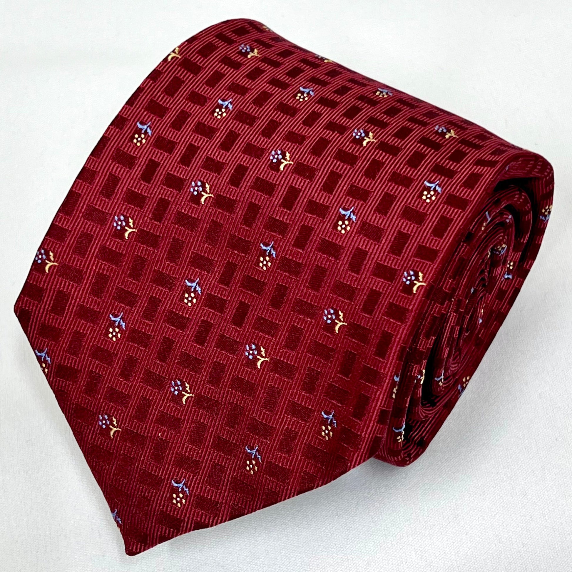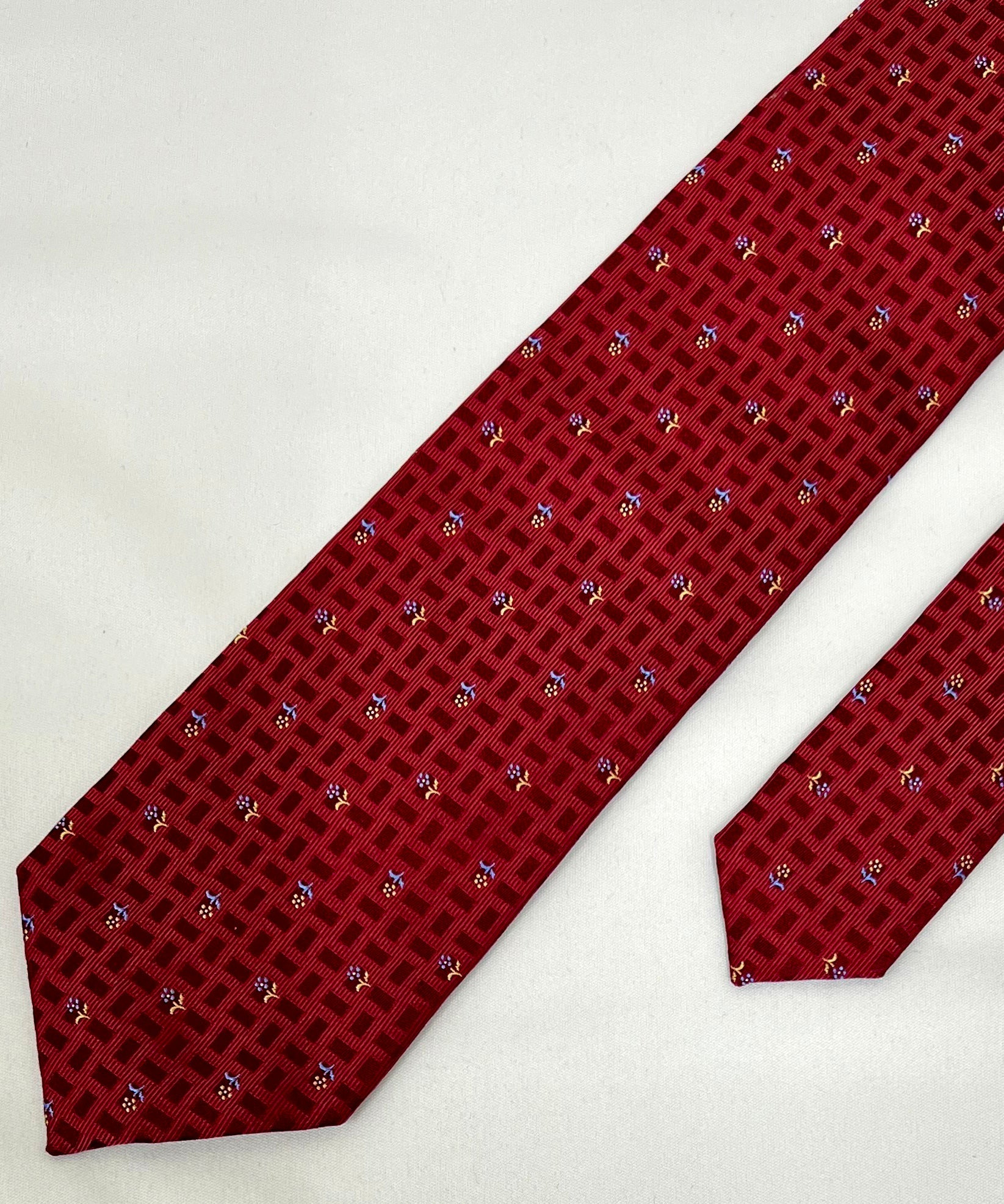 Franco Spada ( フランコスパダ ) フレンチヴィンテージプチフラワーモチーフネクタイ:ワインレッド