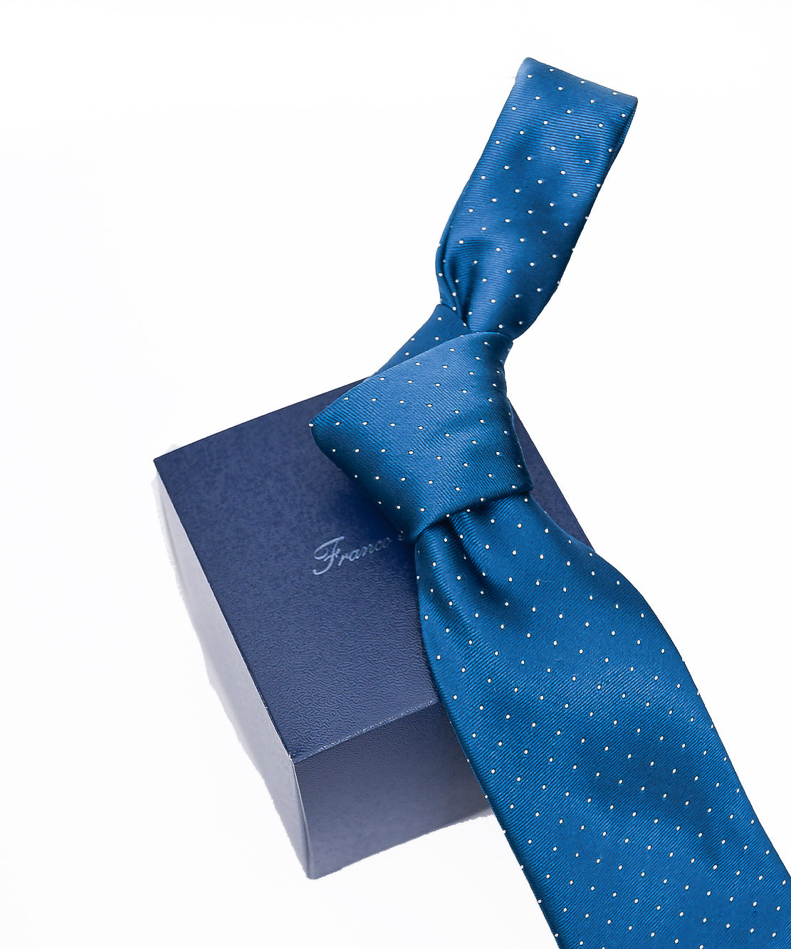 Franco Spada ( フランコスパダ ) ベーシックサテンピンドットネクタイ:フォレストブルー×ホワイト
