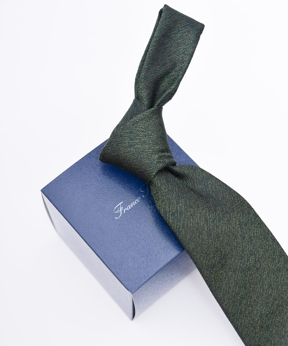Franco Spada ( フランコスパダ ) ヴィンテージ調梨地ミックス無地ネクタイ:ダークオリーブグリーン