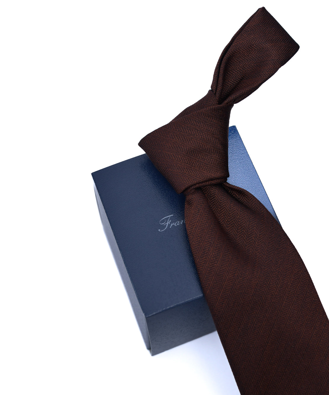 Franco spada (フランコスパダ)ミニヘリンボーン無地ネクタイ:コーヒーブラウン