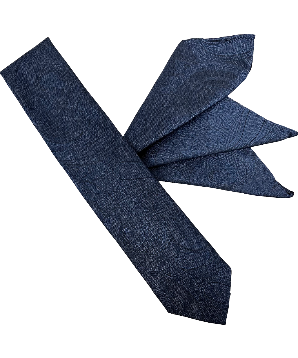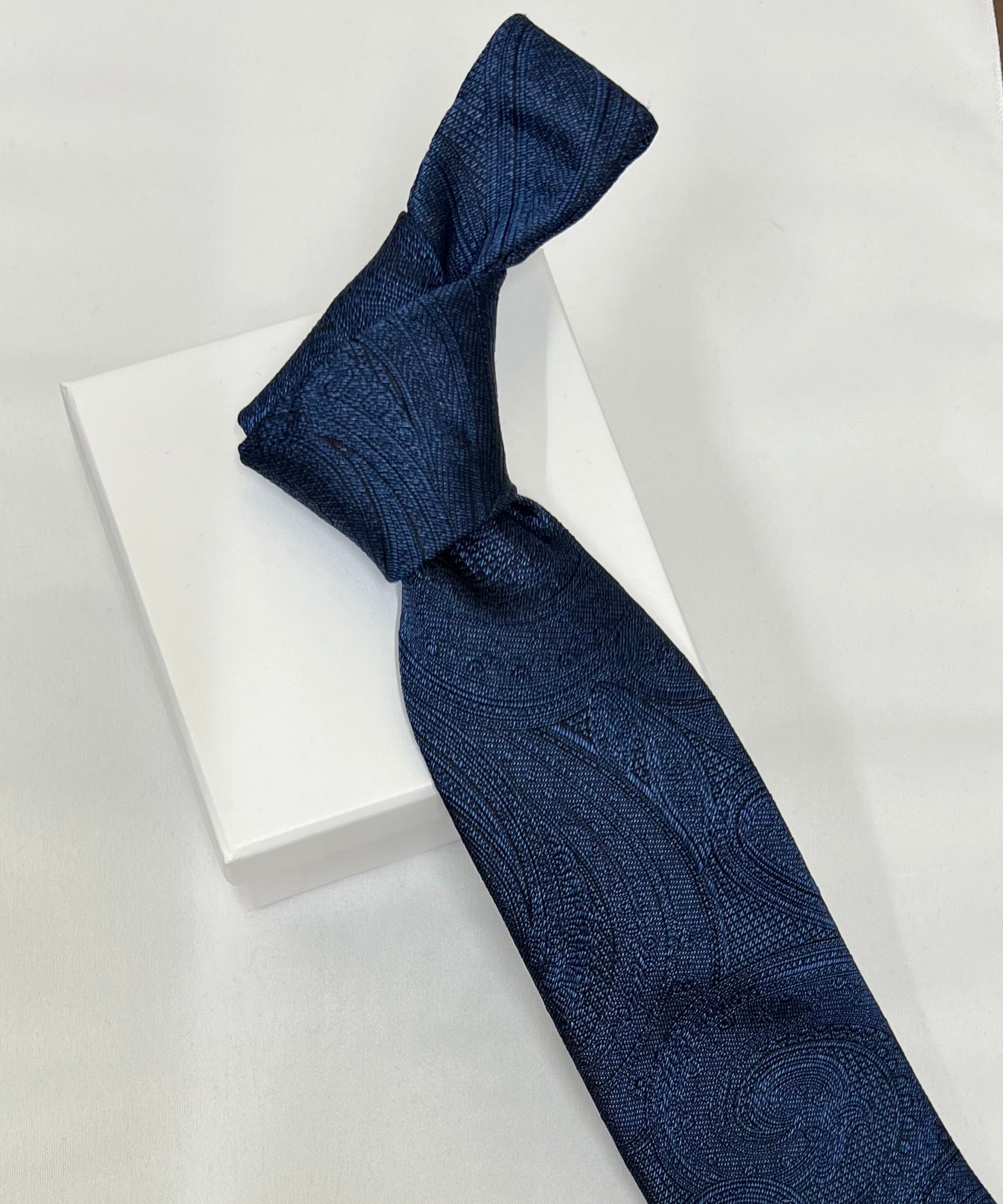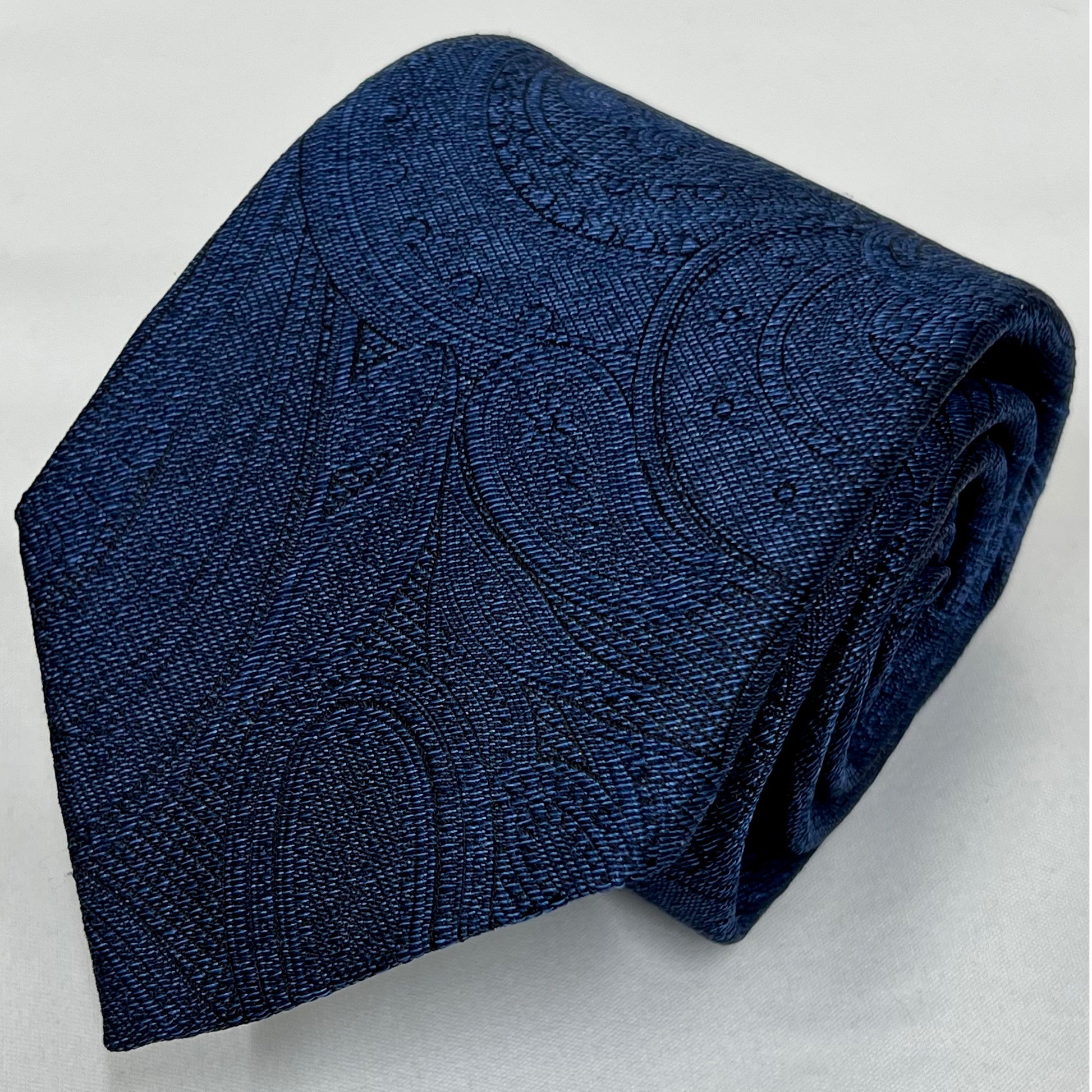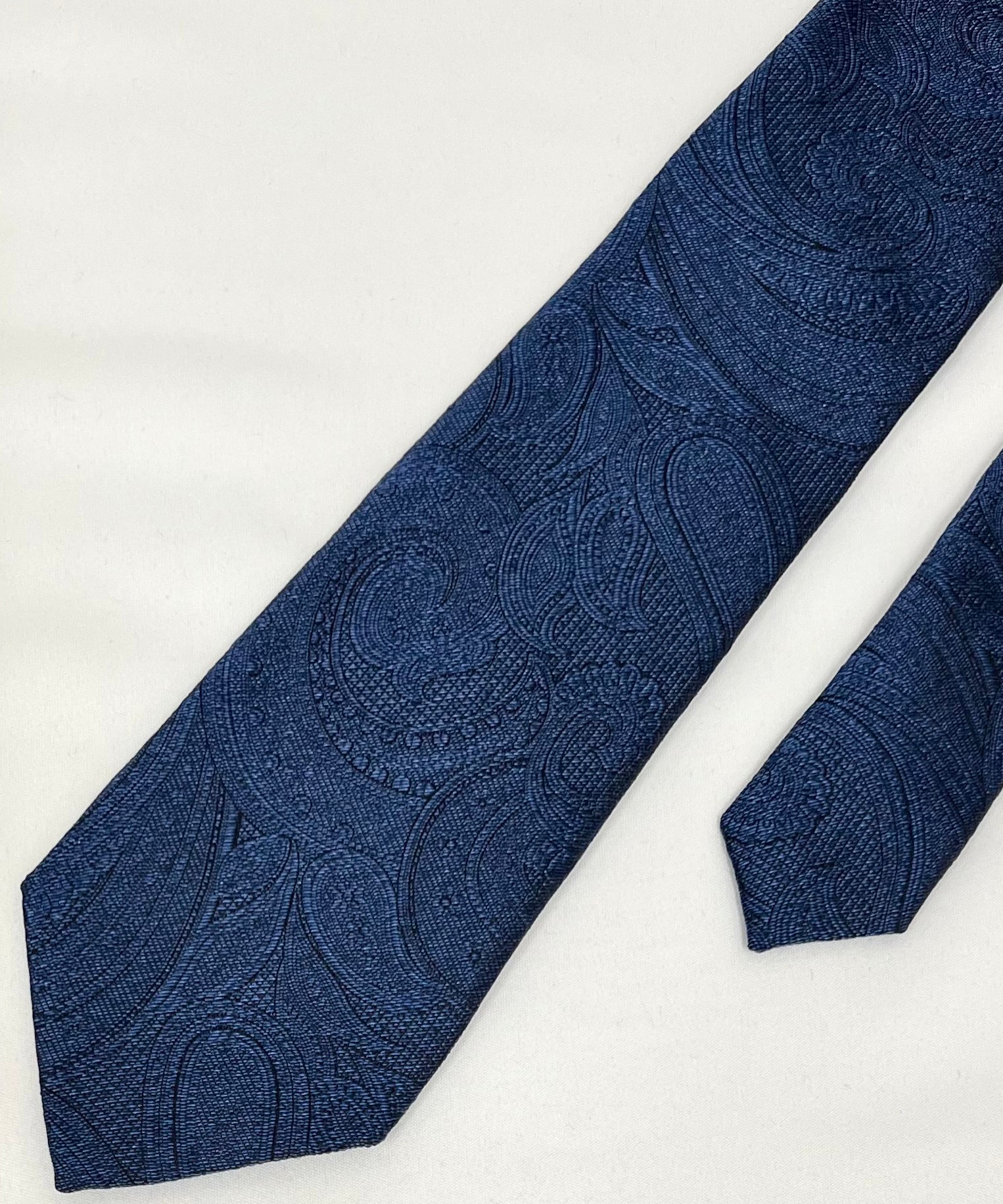 Franco Spada ( フランコスパダ ) メランジ無地調大更紗ペーズリーネクタイ:ダークブルー