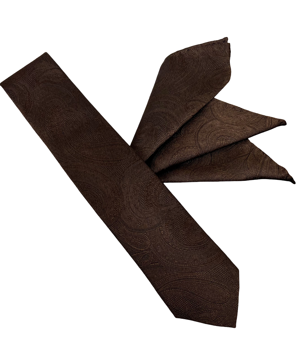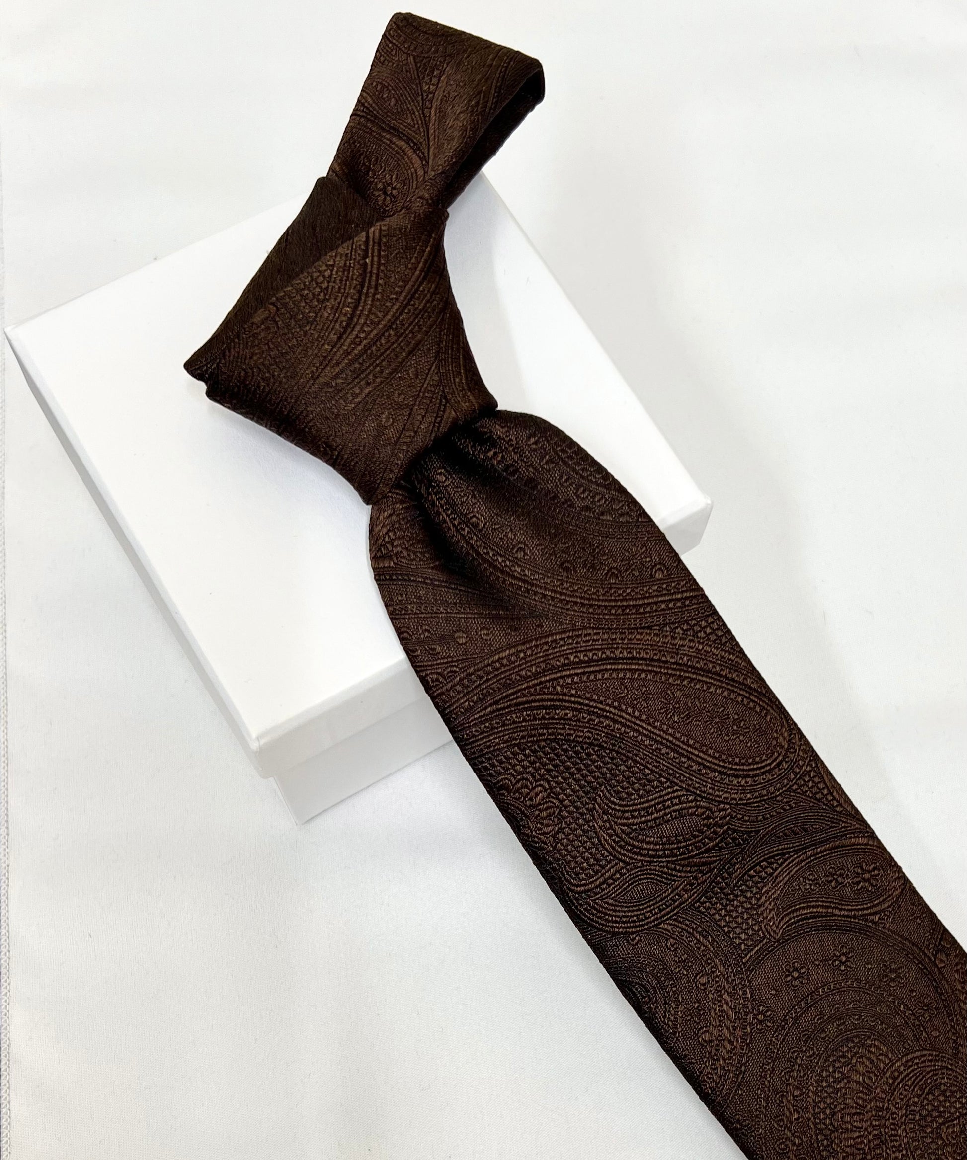 Franco Spada ( フランコスパダ ) メランジ無地調大更紗ペーズリーネクタイ:ブラウン