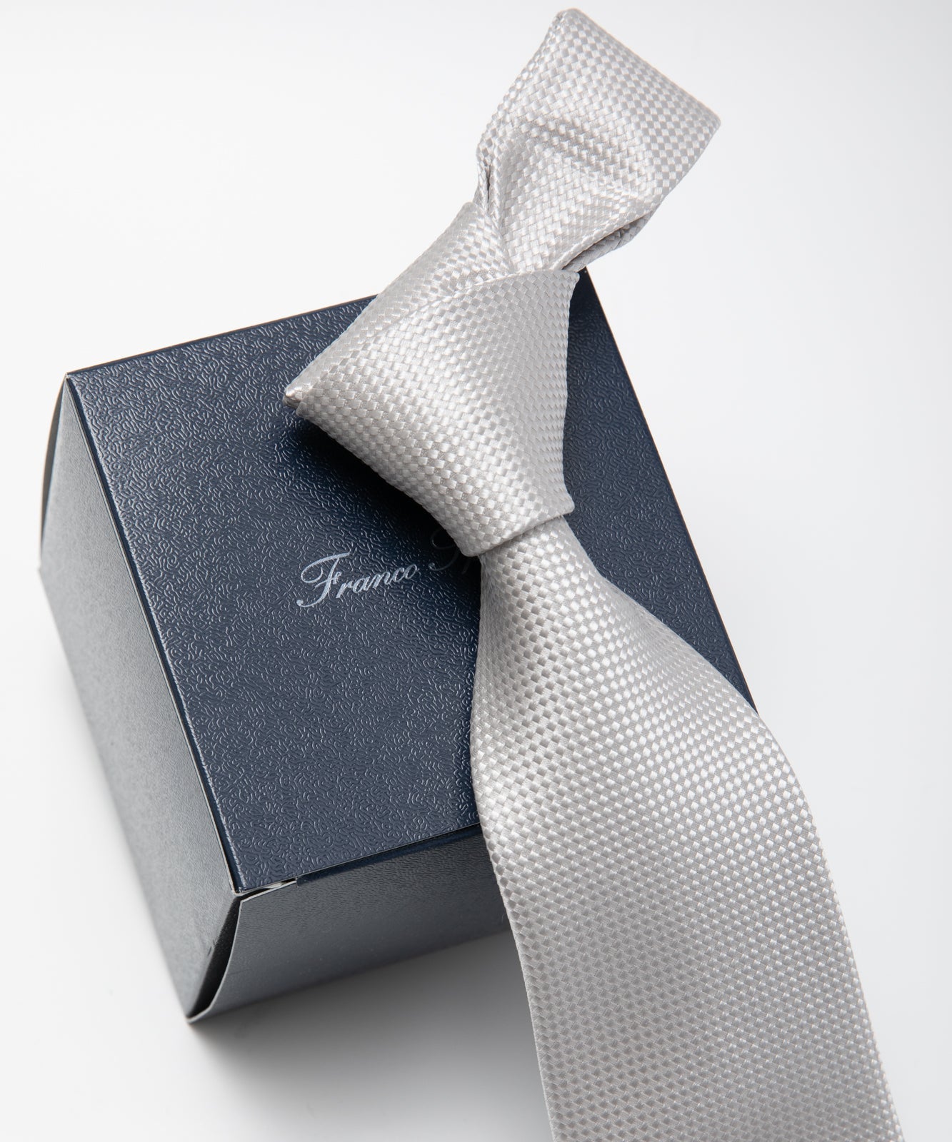 Franco Spada (フランコスパダ) 小バス無地フォーマルネクタイ:シルバー