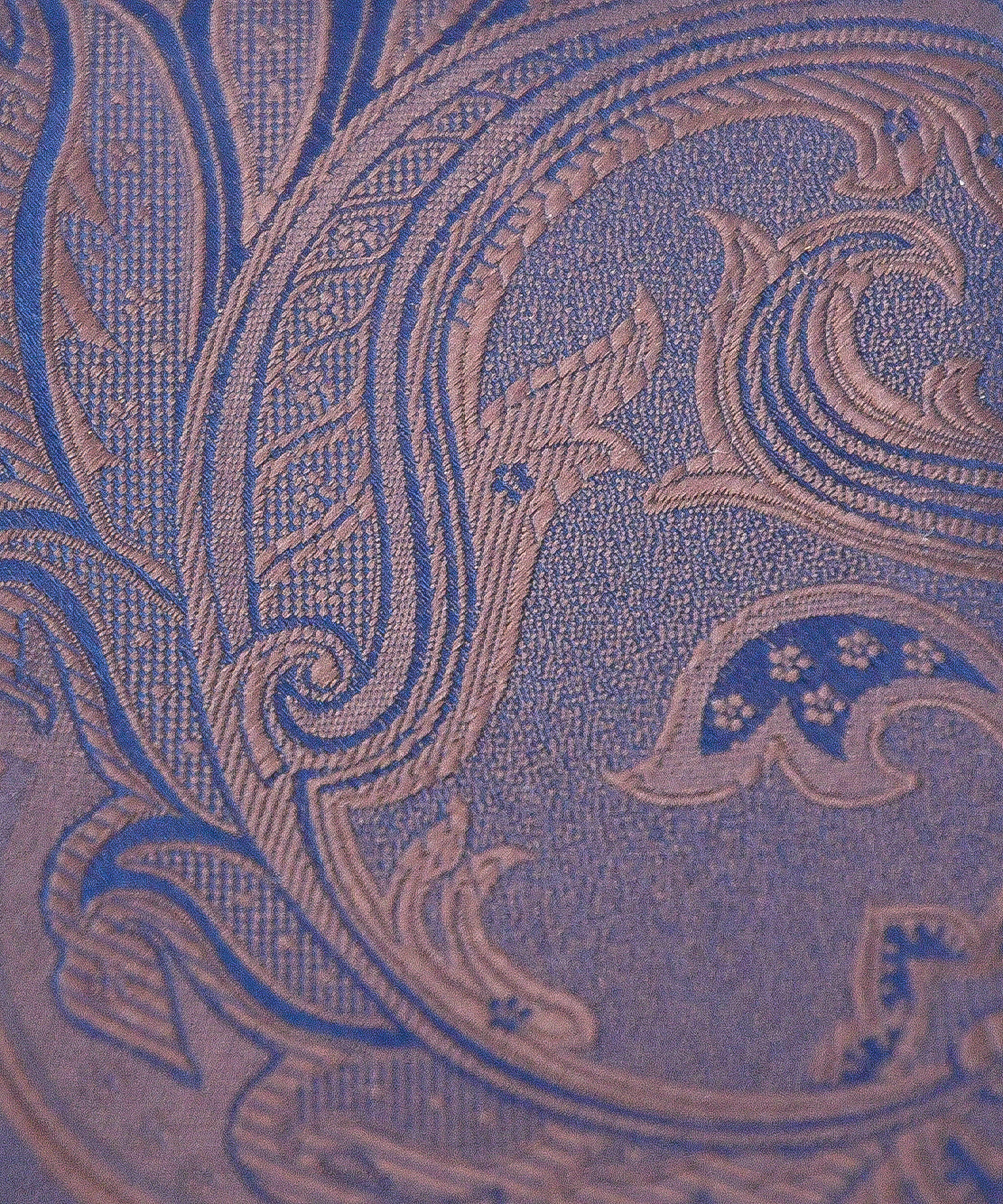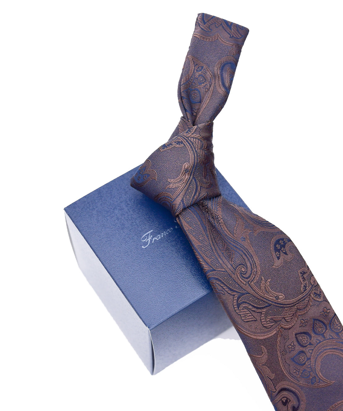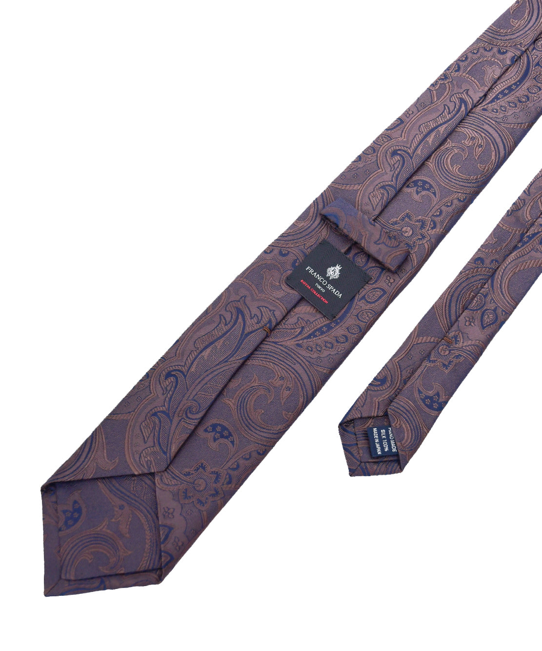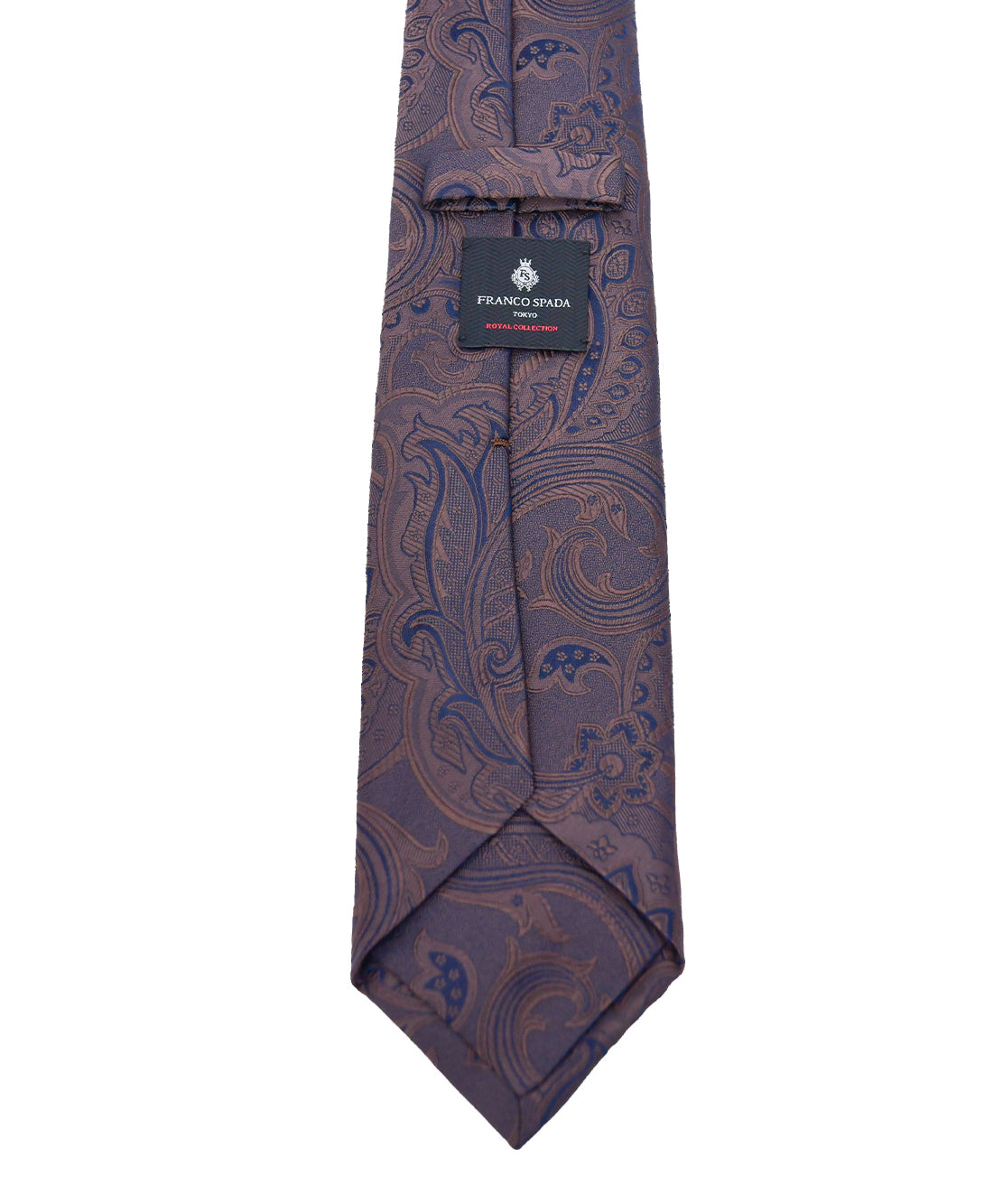 フランコスパダオリジナルで作成したデザインで梨地地組織にヴィンテージ調の更紗ペーズリーを載せて無地テイストに仕上げた商品でシック&エレガンスを表現したハイクオリティのネクタイです。