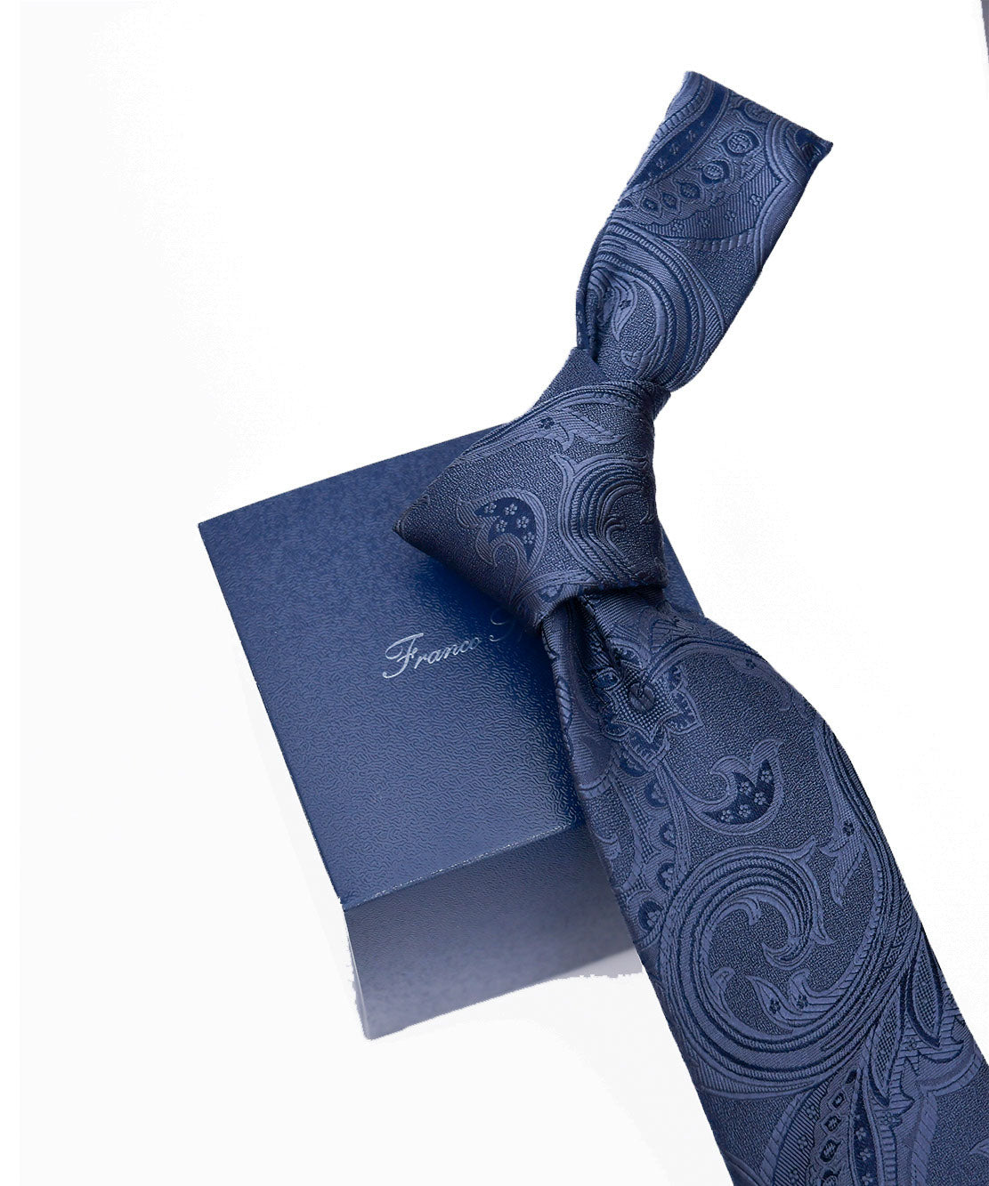 フランコスパダオリジナルで作成したデザインで梨地地組織にヴィンテージ調の更紗ペーズリーを載せて無地テイストに仕上げた商品でシック&エレガンスを表現したハイクオリティのネクタイです。