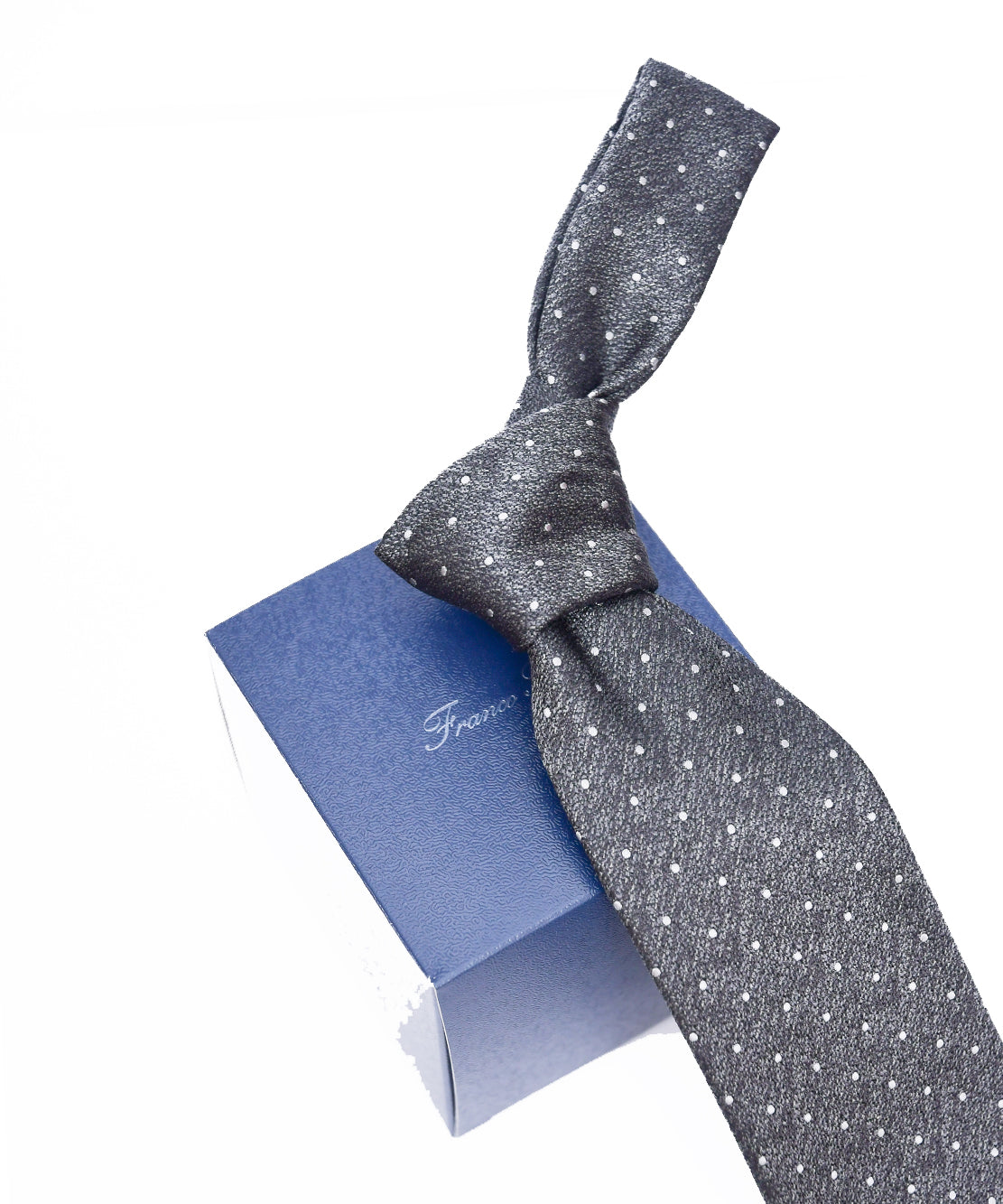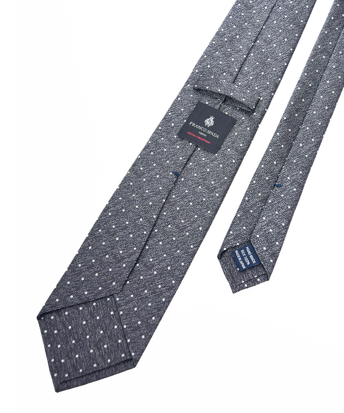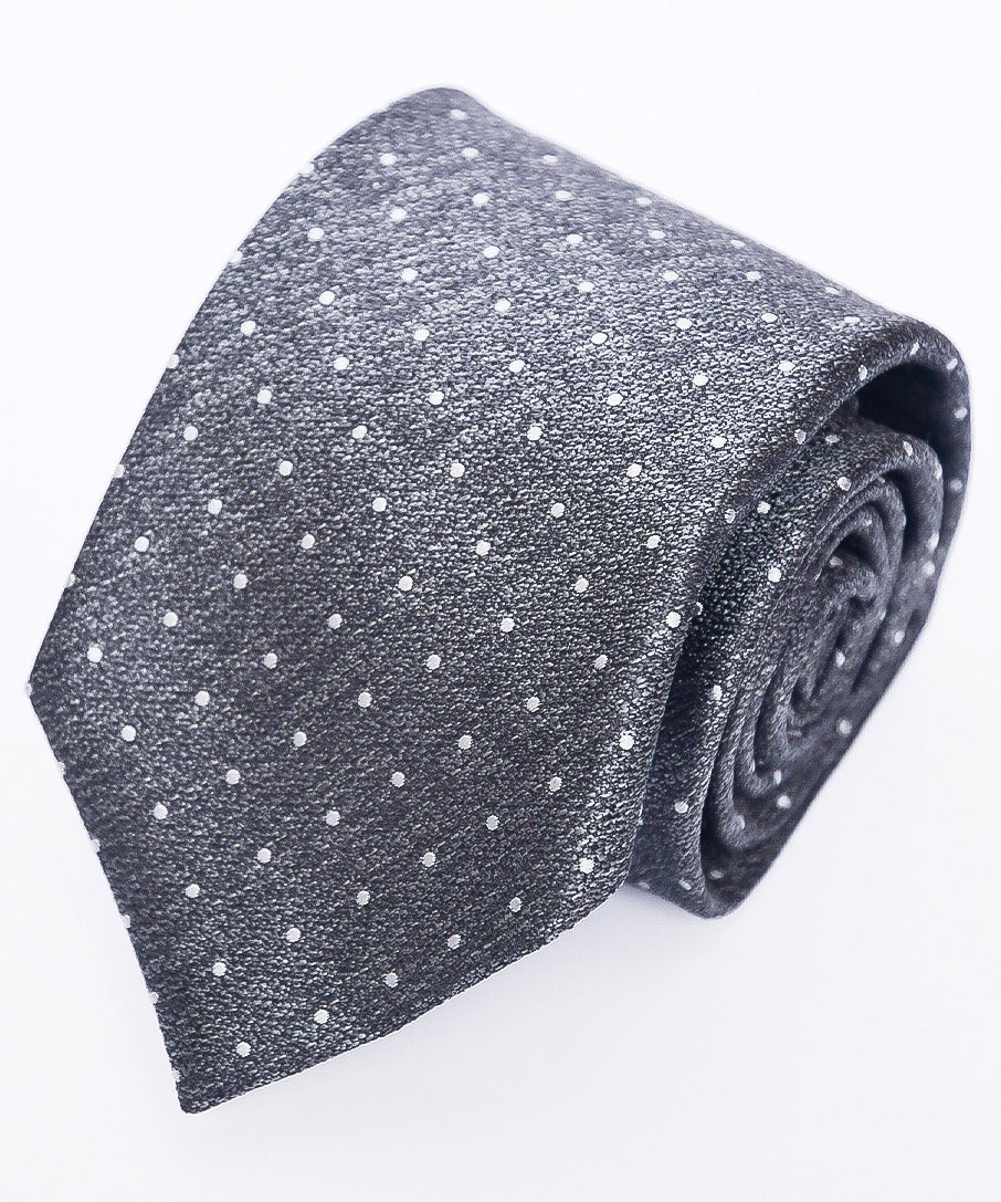 Franco Spada ( フランコスパダ ) ヴィンテージ梨地メランジ調小ドットネクタイ:スチールグレー×シルバー
