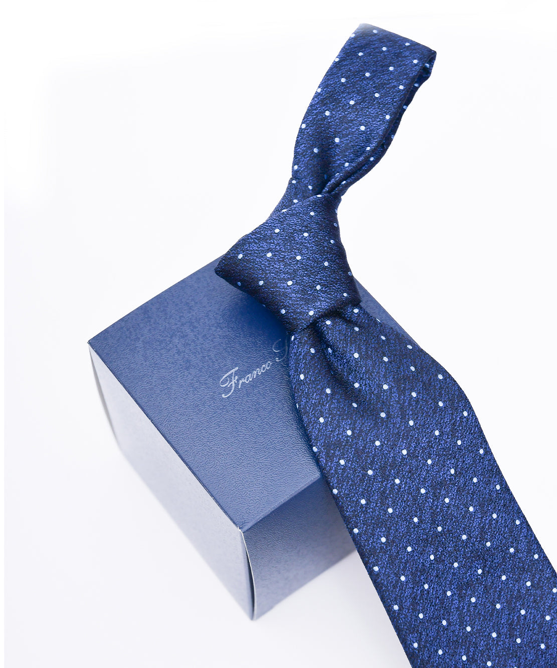 Franco Spada ( フランコスパダ ) ヴィンテージ梨地メランジ調小ドットネクタイ:ネイビー×サックスブルー