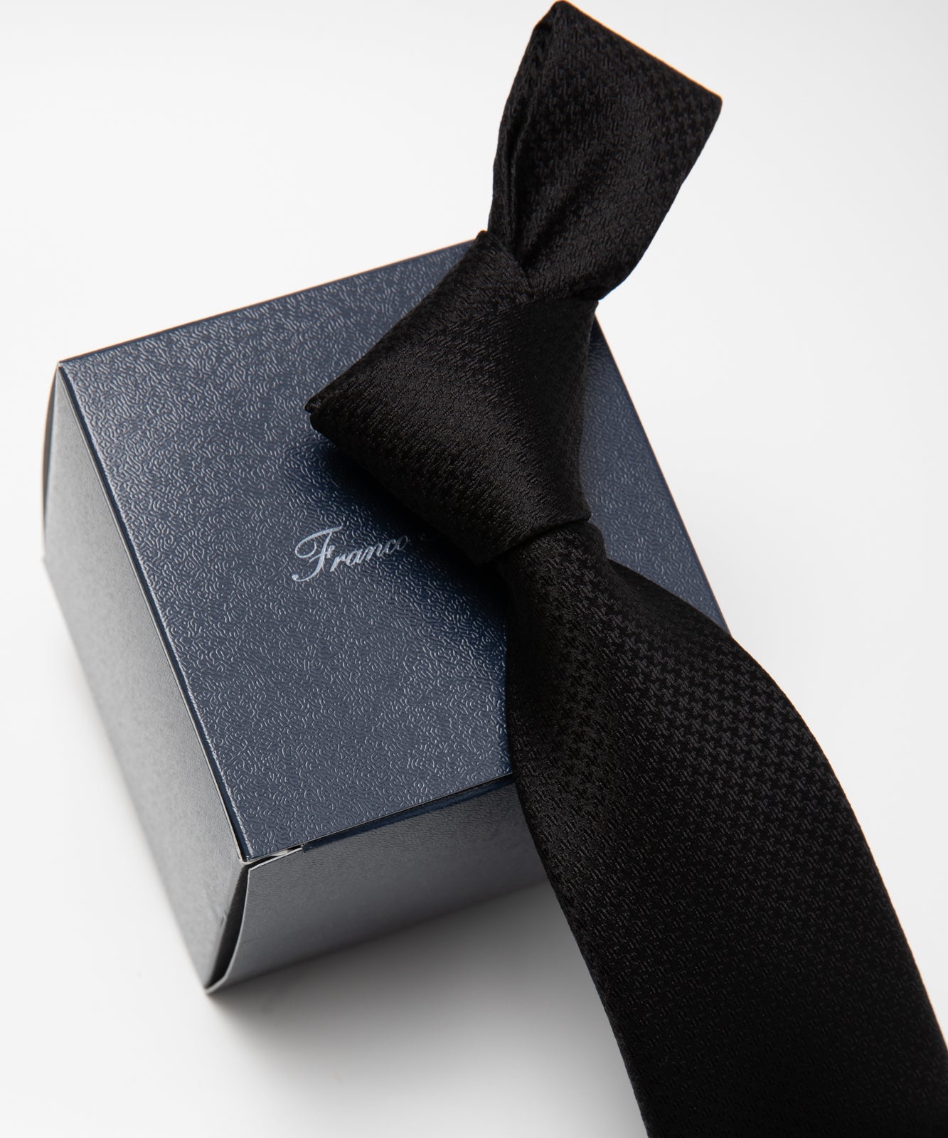 Franco Spada (フランコスパダ) 千鳥格子柄無地フォーマルネクタイ:黒