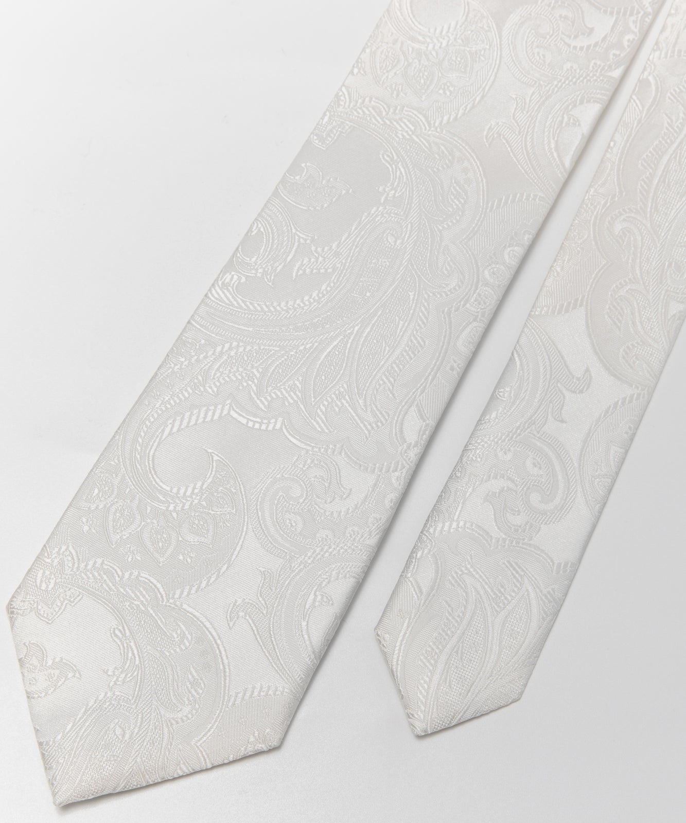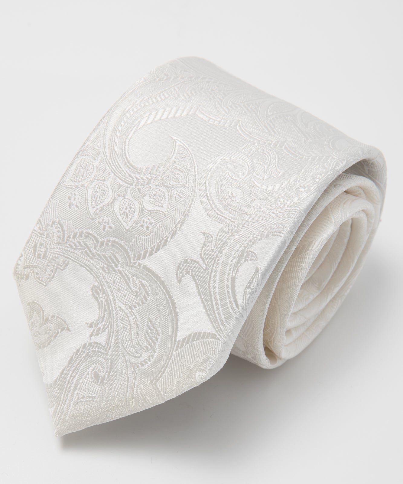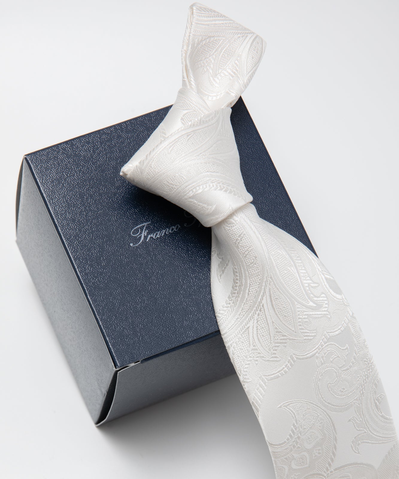 Franco Spada (フランコスパダ) 大更紗ペーズリー無地調フォーマルネクタイ:白