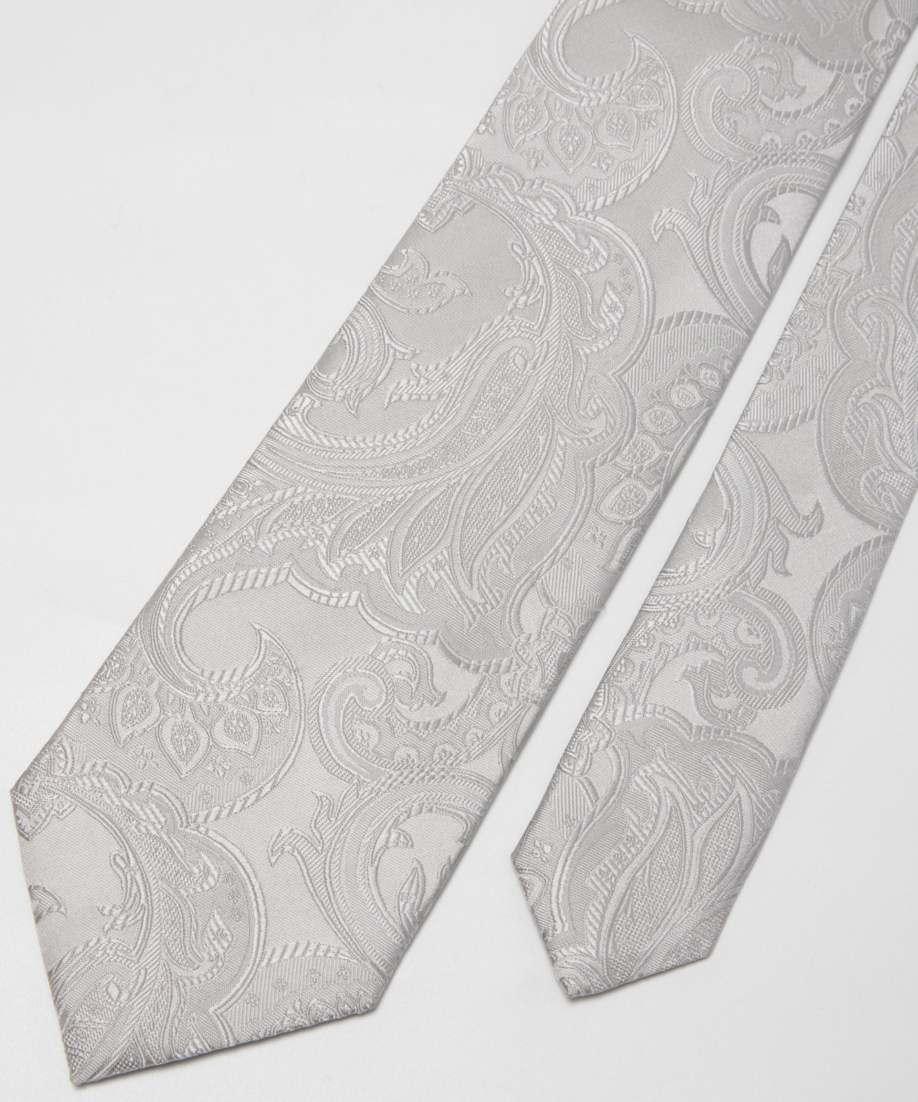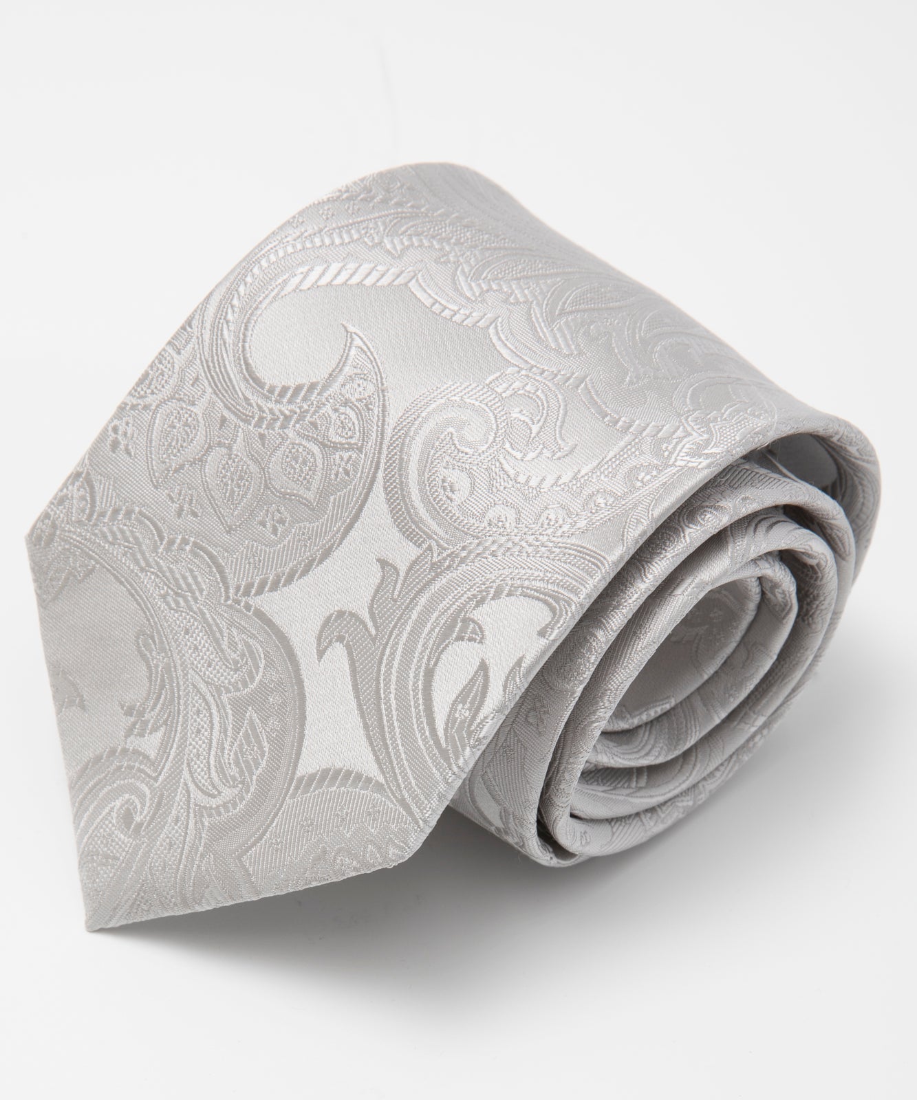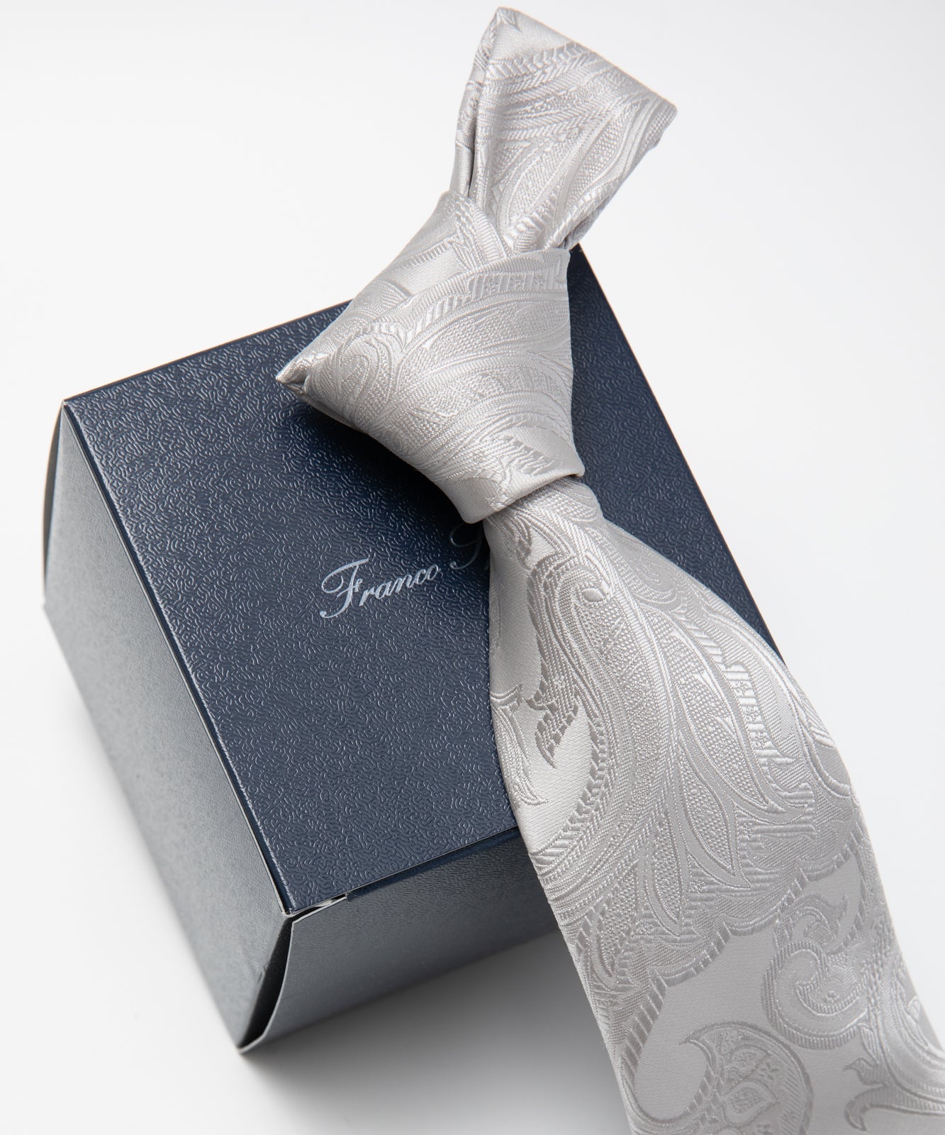 Franco Spada (フランコスパダ) 大更紗ペーズリー無地調フォーマルネクタイ:シルバー