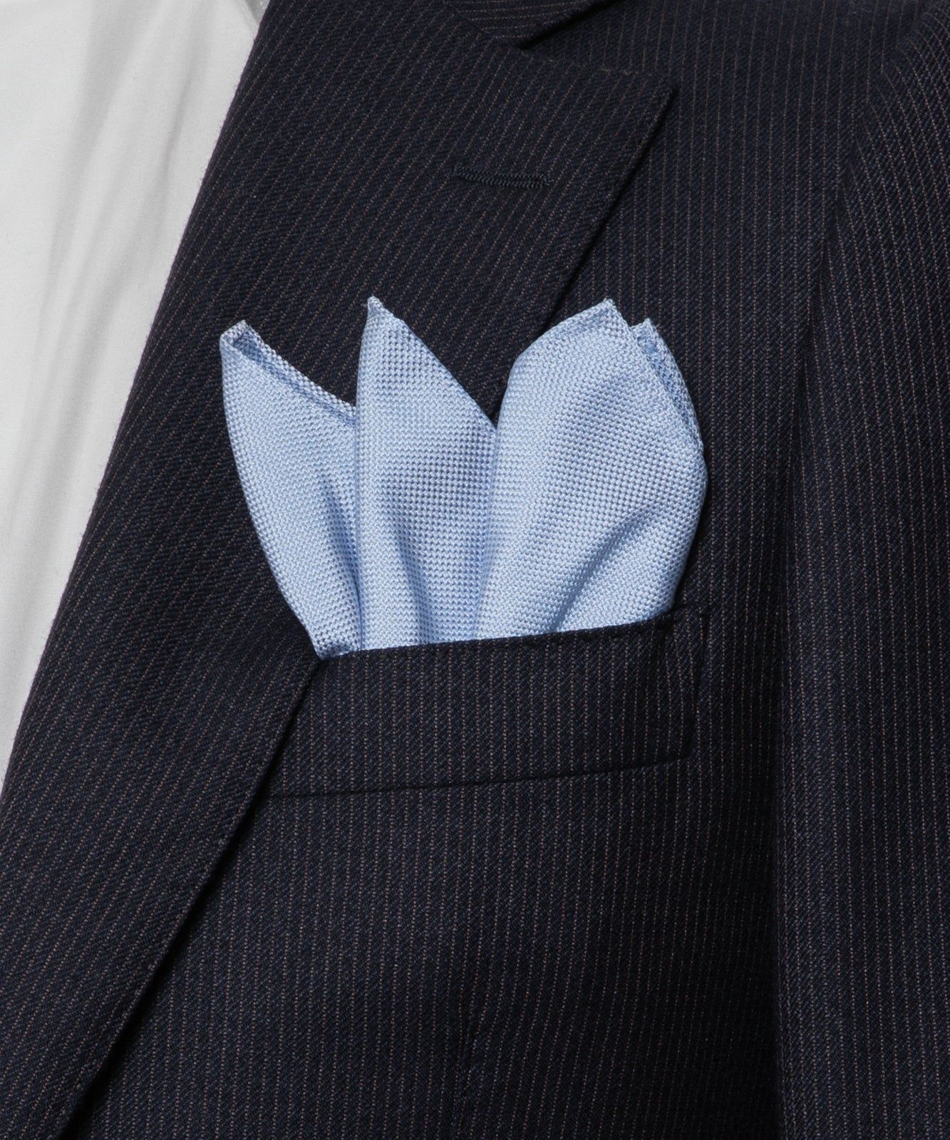 ビジネスシーンは基よりフォーマルシーンでも使用出来るお洒落なポケットチーフとしてワンランクアップのお洒落感を演出します。