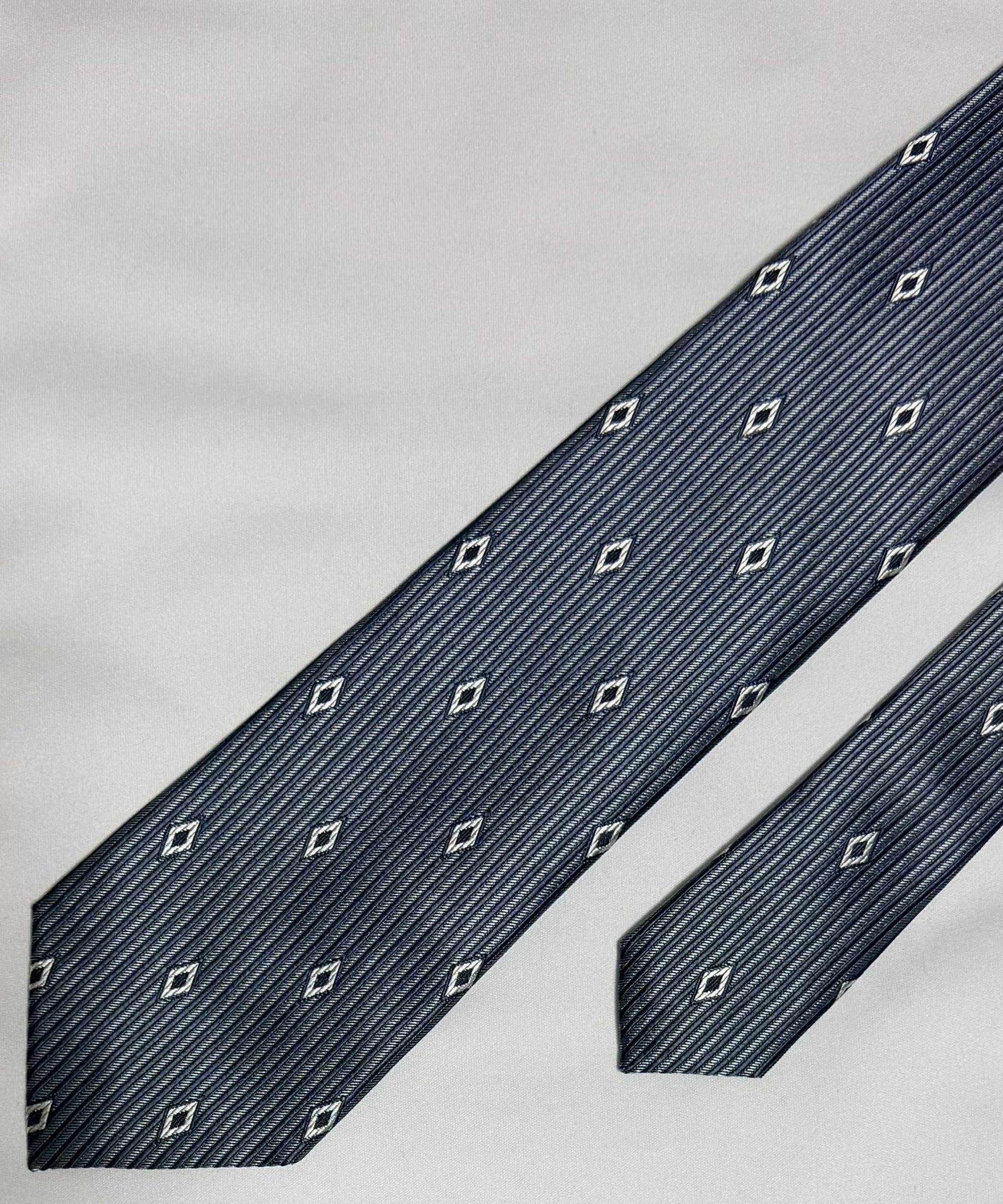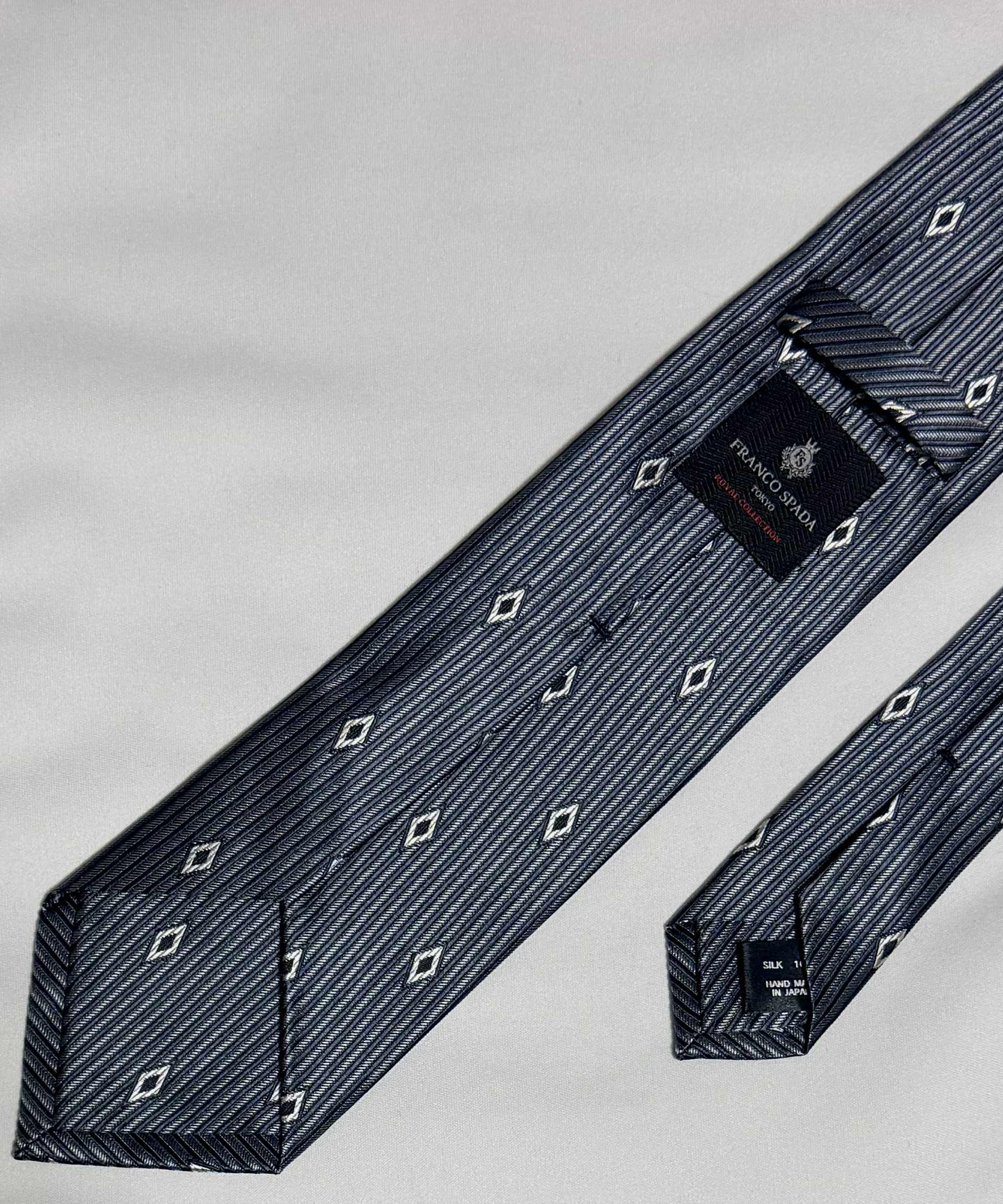 トーン&トーンカラーの綾地組織にジオメトリックダイヤカットデザインを載せてワントーンのモダンなカラーリングで仕上げたフランコスパダらしいコンテンポラリーブリティッシュでエレガントなネクタイです。