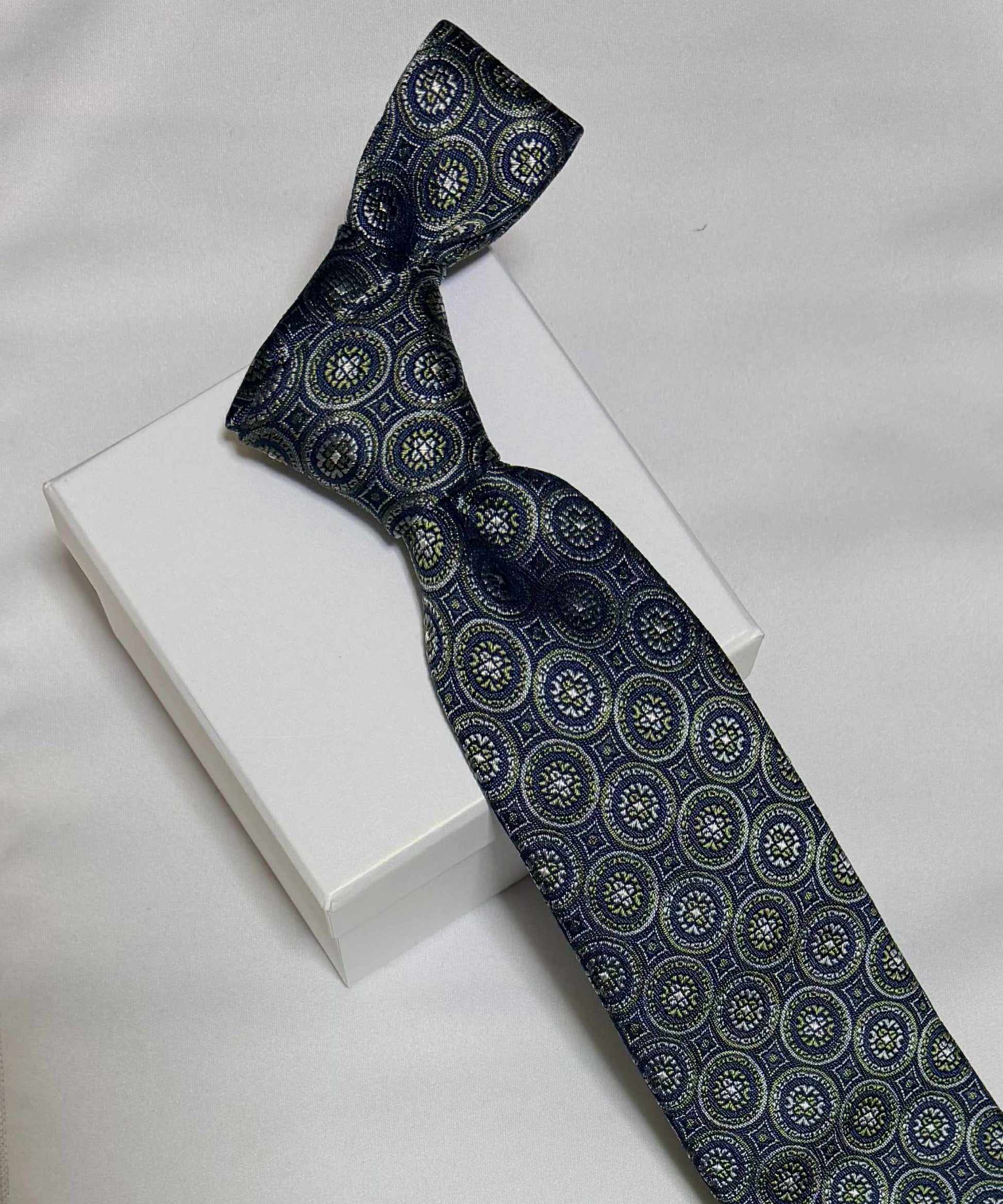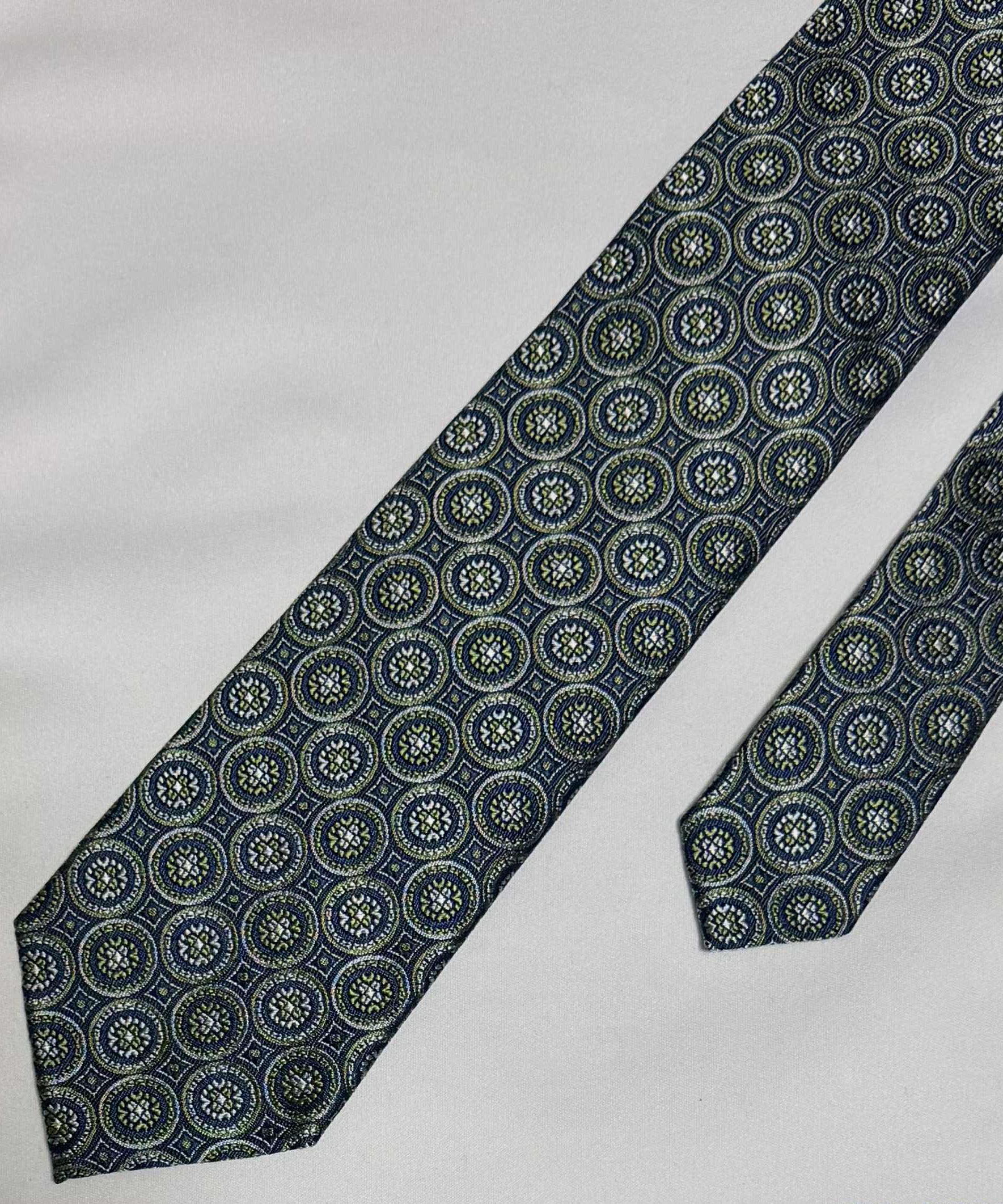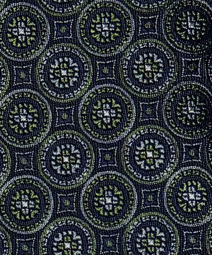 緯繻子の地組織にクラシカルなメダリオンデザインを載せてトーン&トーンのモダンなカラーリングで仕上げたフランコスパダらしいコンテンポラリーブリティッシュでエレガントなネクタイです。