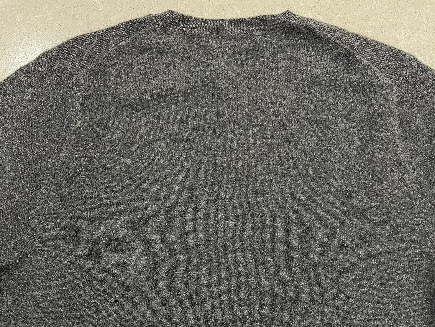 【編み地】                                    10ゲージの編み機を使用して糸と糸にわずかな隙間を作る事で、糸そのものにストレスを与えない編地を作りだし、カシミヤ本来の柔らかさを引き出しています。ハイゲージニットとして一般的よく見られる、12ゲージを使用したやや密度がつまり気味の商品よりも、柔らかく軽く仕上げられています。