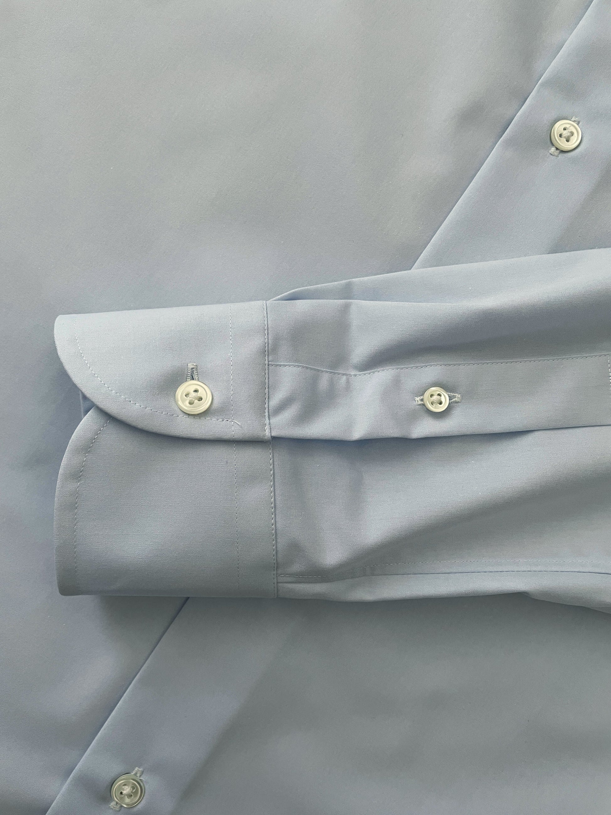 【生地】 日々のアイロンがけ作業をより快適にするために形態安定加工による防しわ性を向上させた生地を使用しました。播州の高番手コットン100%の生地の自然な風合いや柔らかな光沢をいかした上質な肌触りを楽しめます。 斜め畝状の織り方による柔らかくしなやかな肌触りのツイル生地を使用しています。織り方による自然な伸縮性があり着心地が良く、シワになりにくいのが特徴です。