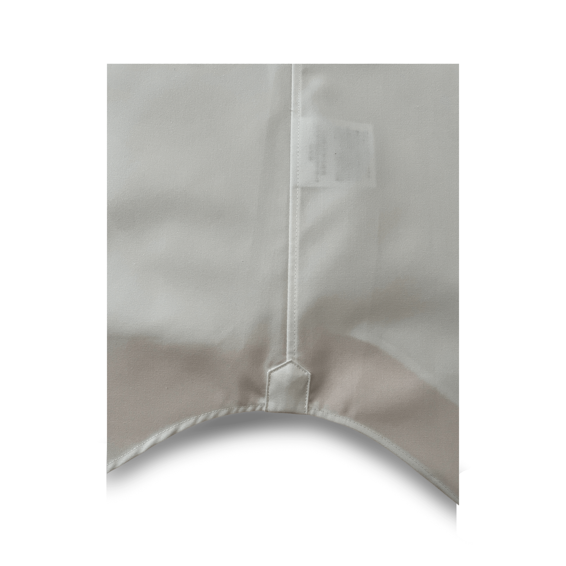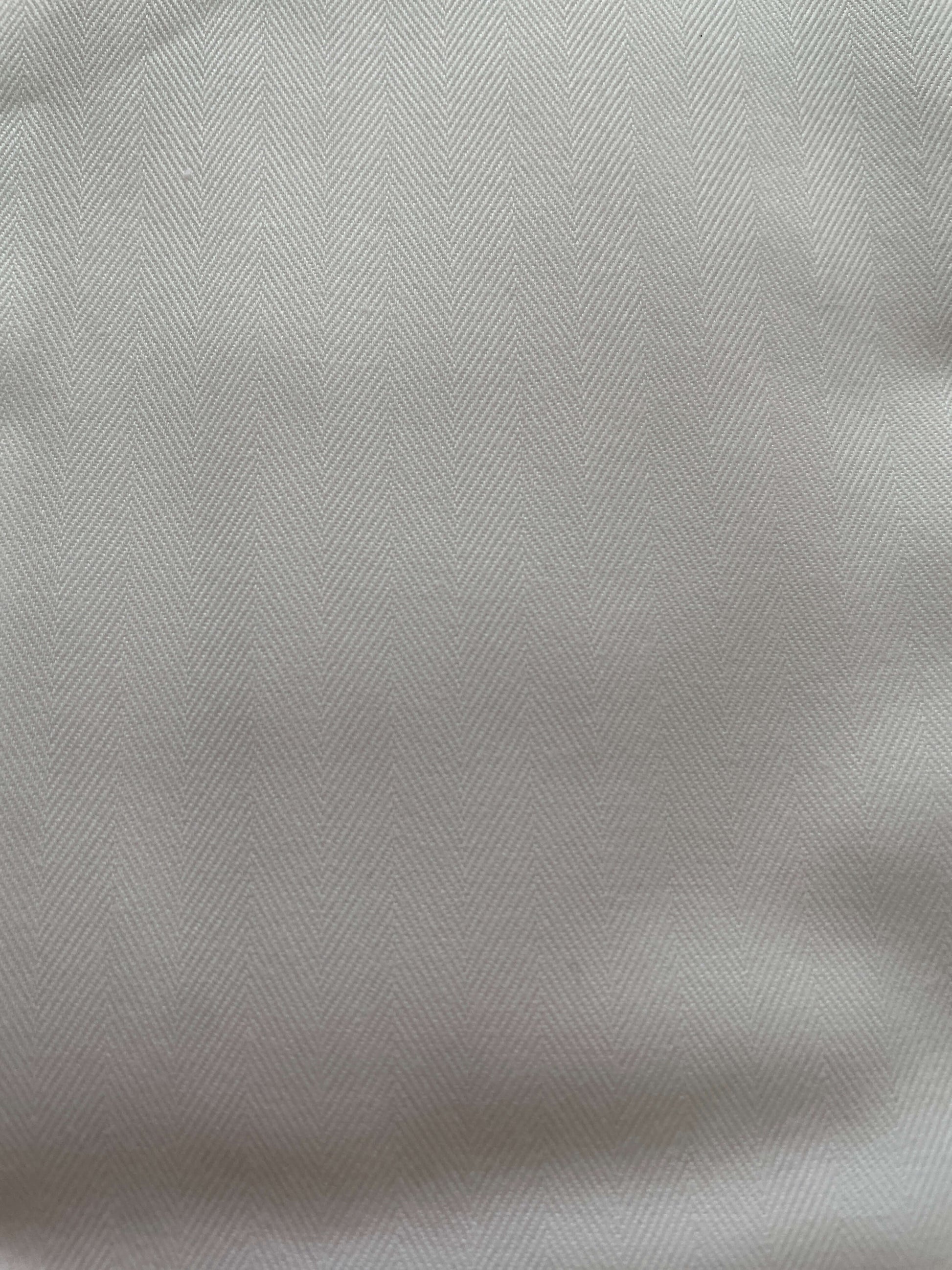 【生地】 日々のアイロンがけ作業をより快適にするために形態安定加工による防しわ性を向上させた生地を使用しました。播州の高番手コットン100%の生地の自然な風合いや柔らかな光沢をいかした上質な肌触りを楽しめます。 ヘリンボンは魚の骨に似たV字型の模様が特徴で、「右上がりの綾織り(右綾)」と「左上がりの綾織り(左綾)」を交互に組み合わせた「V字型」が主流です。そのため、右綾の丈夫さと、左綾の柔らかさの両方を兼ね備えています。綾織り特有の上品な光沢があり、見た目にも高級感があり、耐久性が高く型崩れしないのが特徴です。