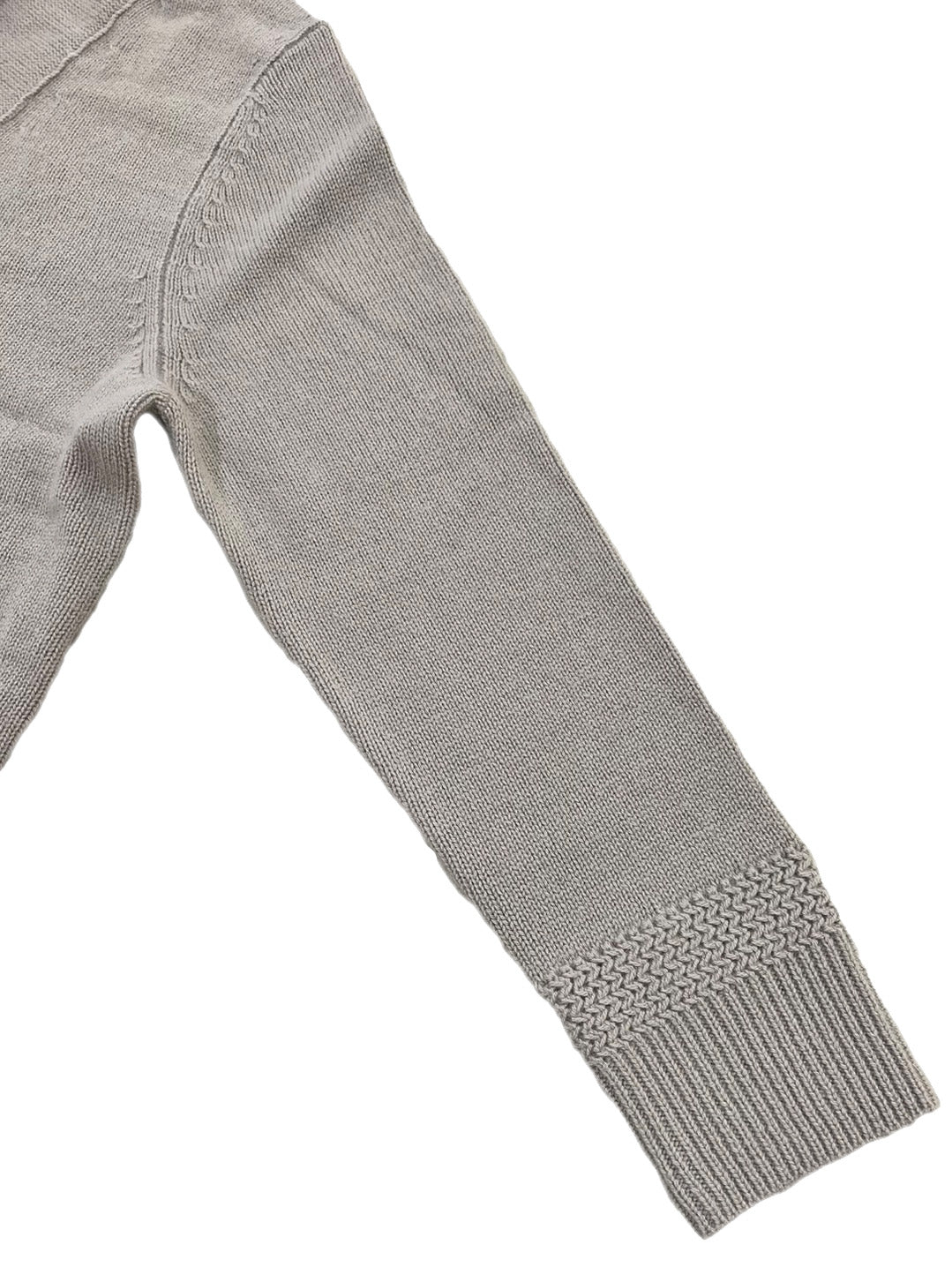 【編み地】 5ゲージの編み機を使用することで、10ゲージシリーズよりカジュアルな商品になっています。ローゲージでありながら、カシミヤ本来の柔らかさを引き出し、柔らかく軽く仕上げられています。